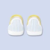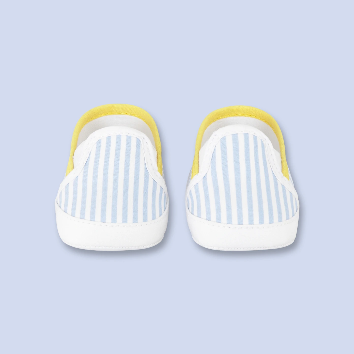 Esprit sport chic des bottons du tout-petit en popeline rayée. Effet graphique du décolleté jaune. Pratiques, les brides élastiquées sur le cou-de-pied.