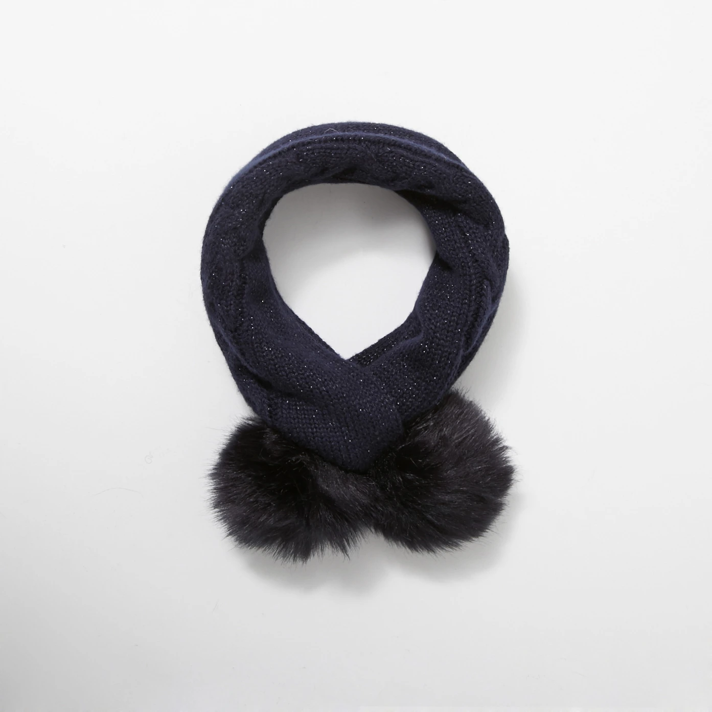 Echarpe maille torsadée. elle se noue en col grâce à ses pompons.