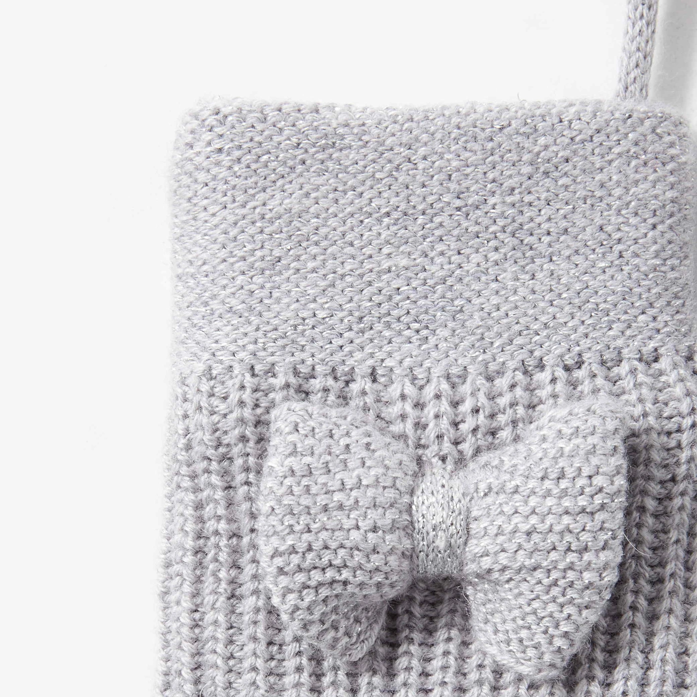 Moufles en côtes perlées avec une touche de lurex. Intérieur en micro-polaire. Elles s'associent avec son bonnet et son col.