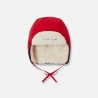 Chapka couleur rouge écarlate, facile à entretenir et pratique avec ses cordons, elle aura une place de choix dans le vestiaire de votre enfant.