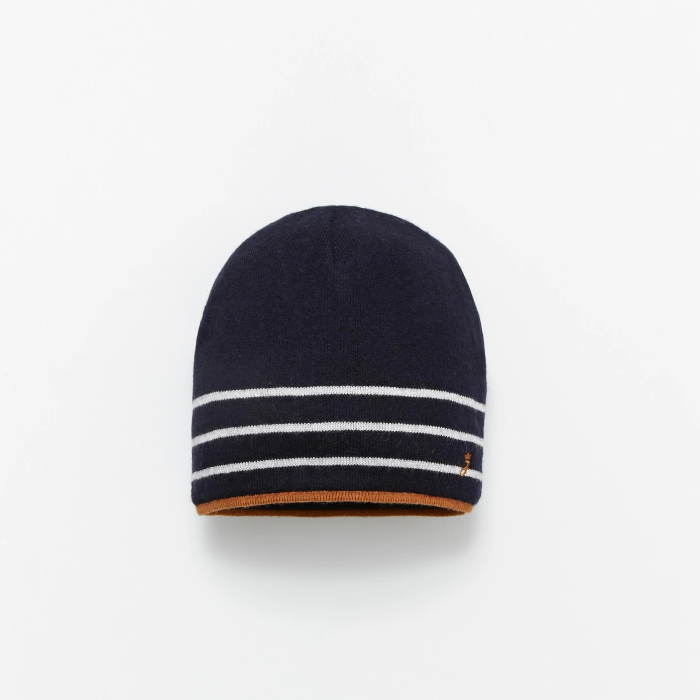 Bonnet marine à rayures et détail contrasté marron