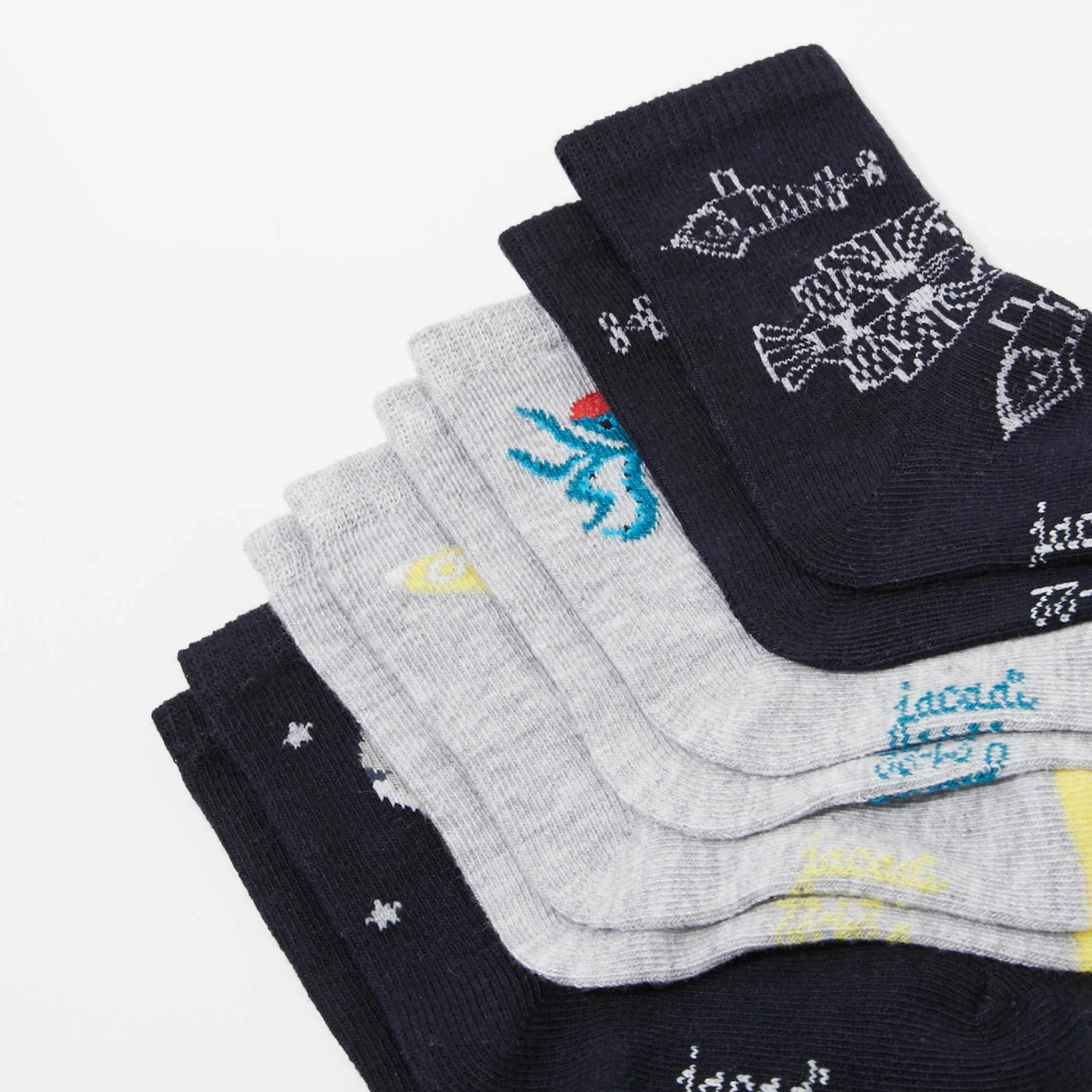 Ces chaussettes aux motifs célestes et marin s'accorderont facilement aux tenues des petits garçons.