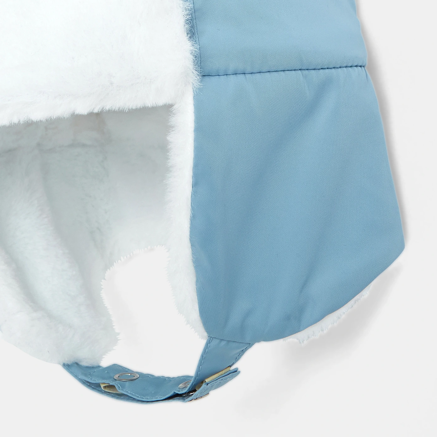 Bébé sera bien à l'abri pour partir au ski grâce à cette chapka en nylon. Assortie à la combinaison pilote, elle est doublée en fausse fourrure et se ferme par pressions. Chaude et confortable, bébé ne voudra plus la quitter. - Collection Petite neige - Doublure en fausse fourrure - Fermeture par pressions