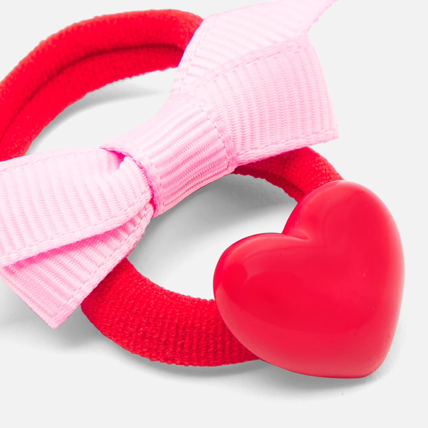 Premières couettes ou premier chignon seront bien maintenus grâce à ce duo d'élastiques bébé fille. Orné d'un coeur pour l'un et d'un noeud rose pour l'autre, ils apporteront une touche d'originalité à toutes ses coiffures.- Coeur en résine- Noeud en gros-grain