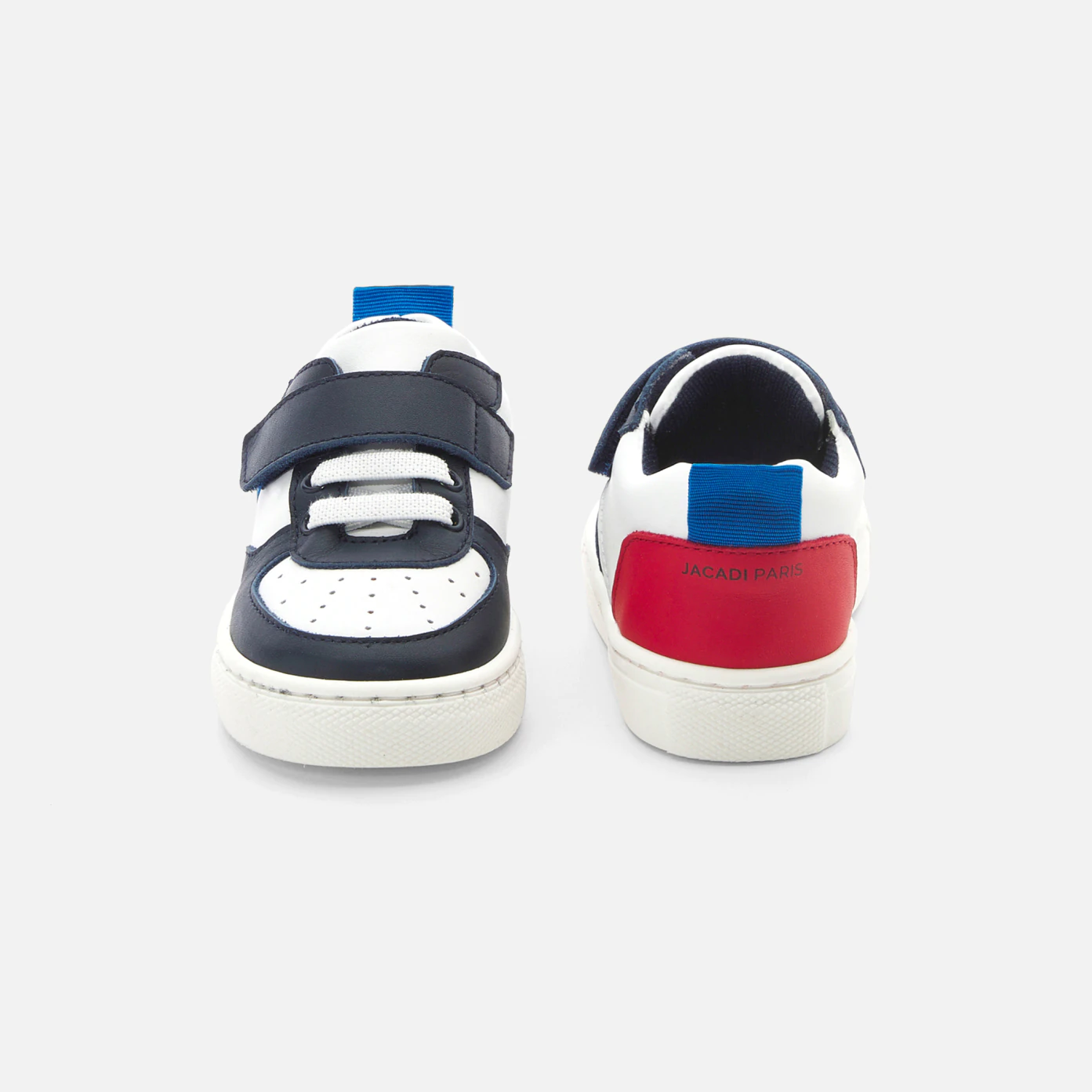 Les baskets s'invitent dans le vestiaire de bébé pour un look sport urbain. En cuir lisse et color block, elles sont accessoirisées de lacets élastiqués et d'une bride velcro pour un enfilage facile. Confortables et adaptées aux bébés sachant marcher, elles finaliseront ses tenues du quotidien avec style. - Fabriquées au Portugal- Cuir lisse- Doublure en textile- Col et languette moussés- Lacets élastiqués et bride velcro - Ce modèle chausse légèrement plus grand que la pointure habituelle