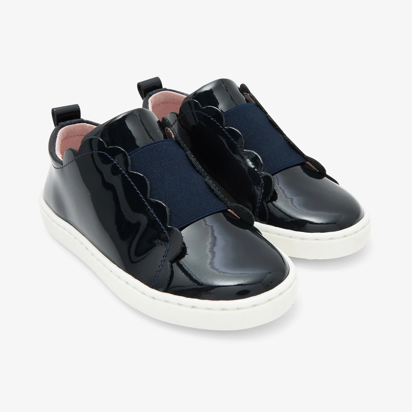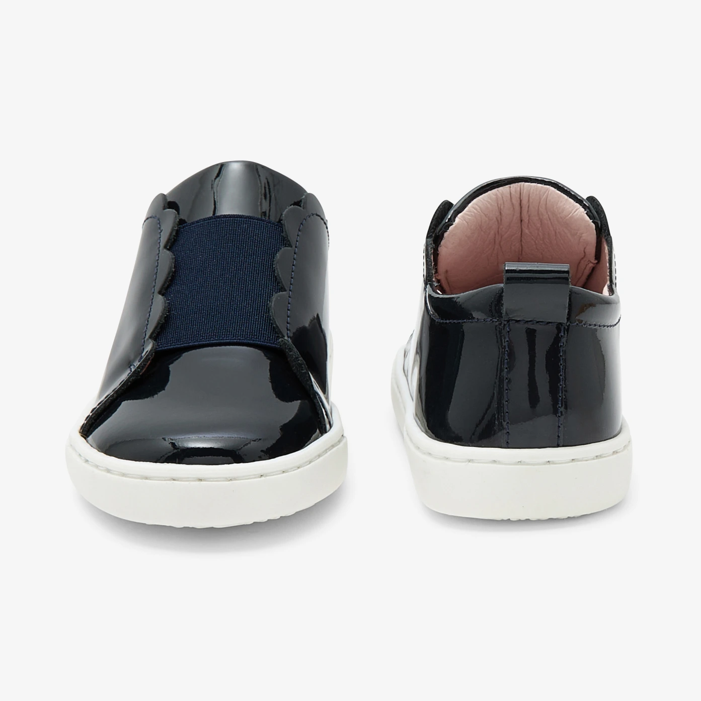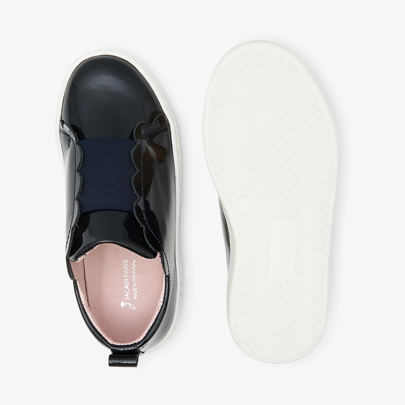 Un vestiaire de rentrée chic et polyvalent avec ces tennis enfant fille. Aussi chics que pratiques grâce leur large ouverture élastiquée, cuir verni à la brillance miroir et jolis festons dynamisent ces indispensables du quotidien. Portées avec un pantalon large ou une robe, elles plaisent pour leur versatilité.- Fabriquées au Portugal- Cuir verni- Doublure en cuir- Col et languette moussés- Semelle intérieure amovible- Large ouverture par élastique- Finition festonnée - Ce modèle chausse normalement