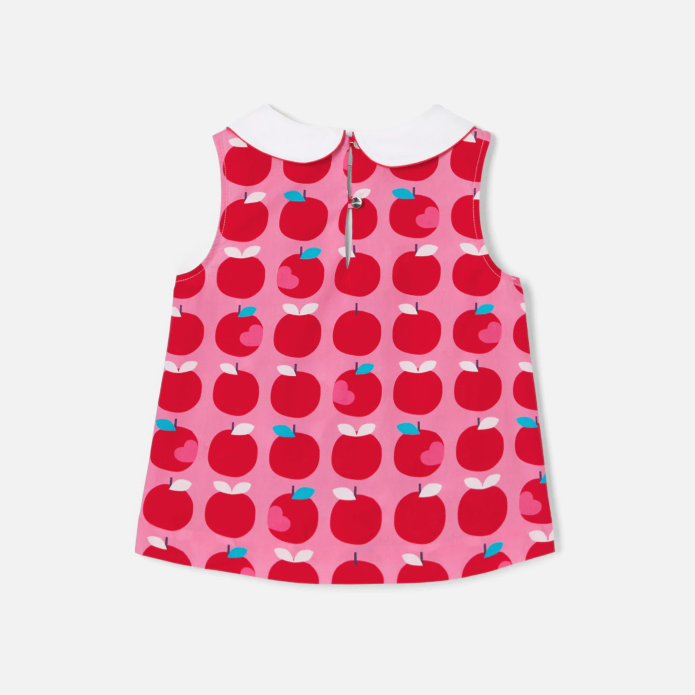 Cette blouse enfant fille promet une saison graphique et colorée. Dynamisé par un motif pomme, un élégant col Claudine passepoilé contrasté sublime ce modèle à porter avec un pantalon sailor et des running pour un look très parisien.- Blouse fille en coton biologique- Col Claudine en popeline- Passepoil contrasté- Motif pomme- Pli devant- Ouverture boutonnée au dos