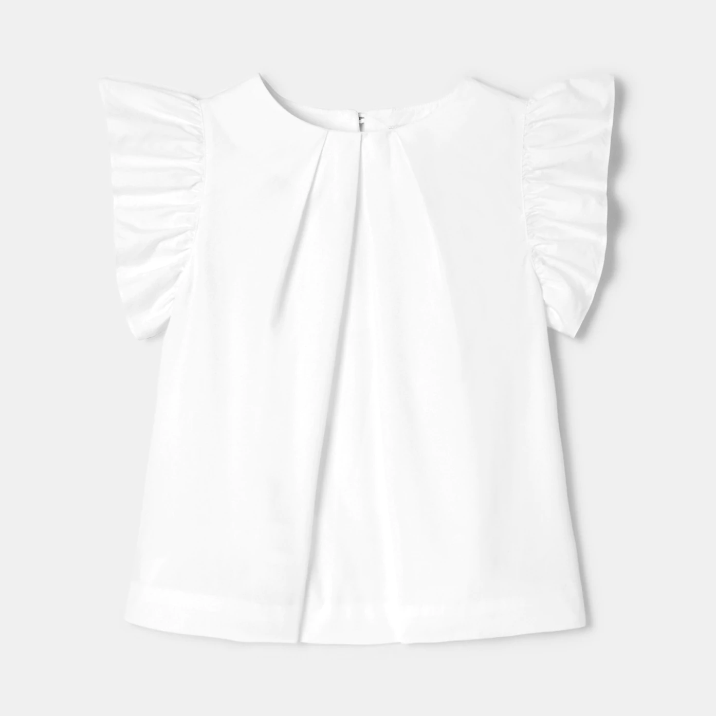 Un vestiaire chic et contemporain avec cette blouse enfant fille. En fil à fil de coton doux et léger, ses plis à l'encolure et manches volantées surlignées d'un biais contrasté apportent un joli volume. Modèle versatile à porter avec un pantalon large ou un short, pour votre fille.- Blouse fille en fil à fil de coton biologique- Manches volantées à biais contrasté- Plis à l'encolure- Ouverture boutonnée au dos