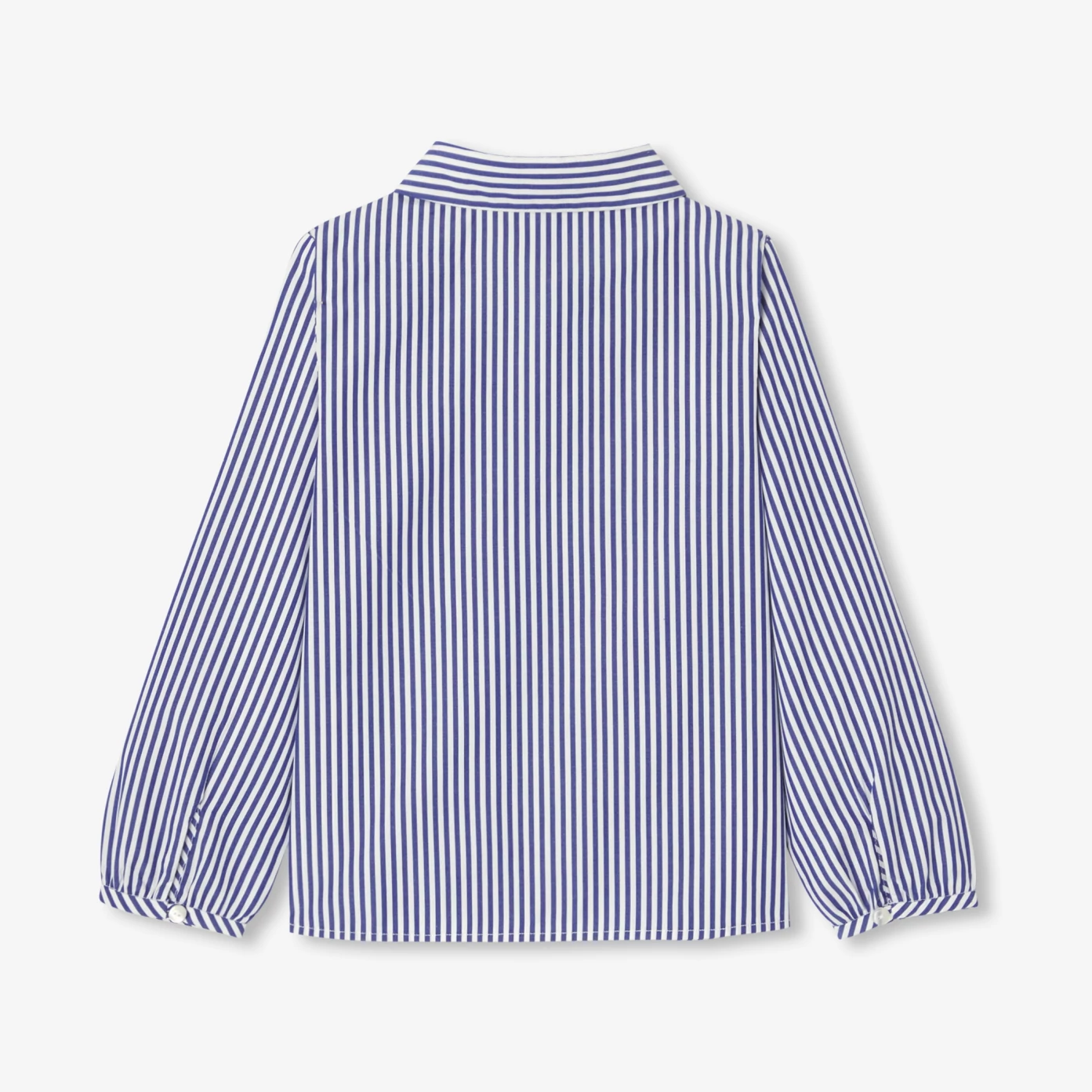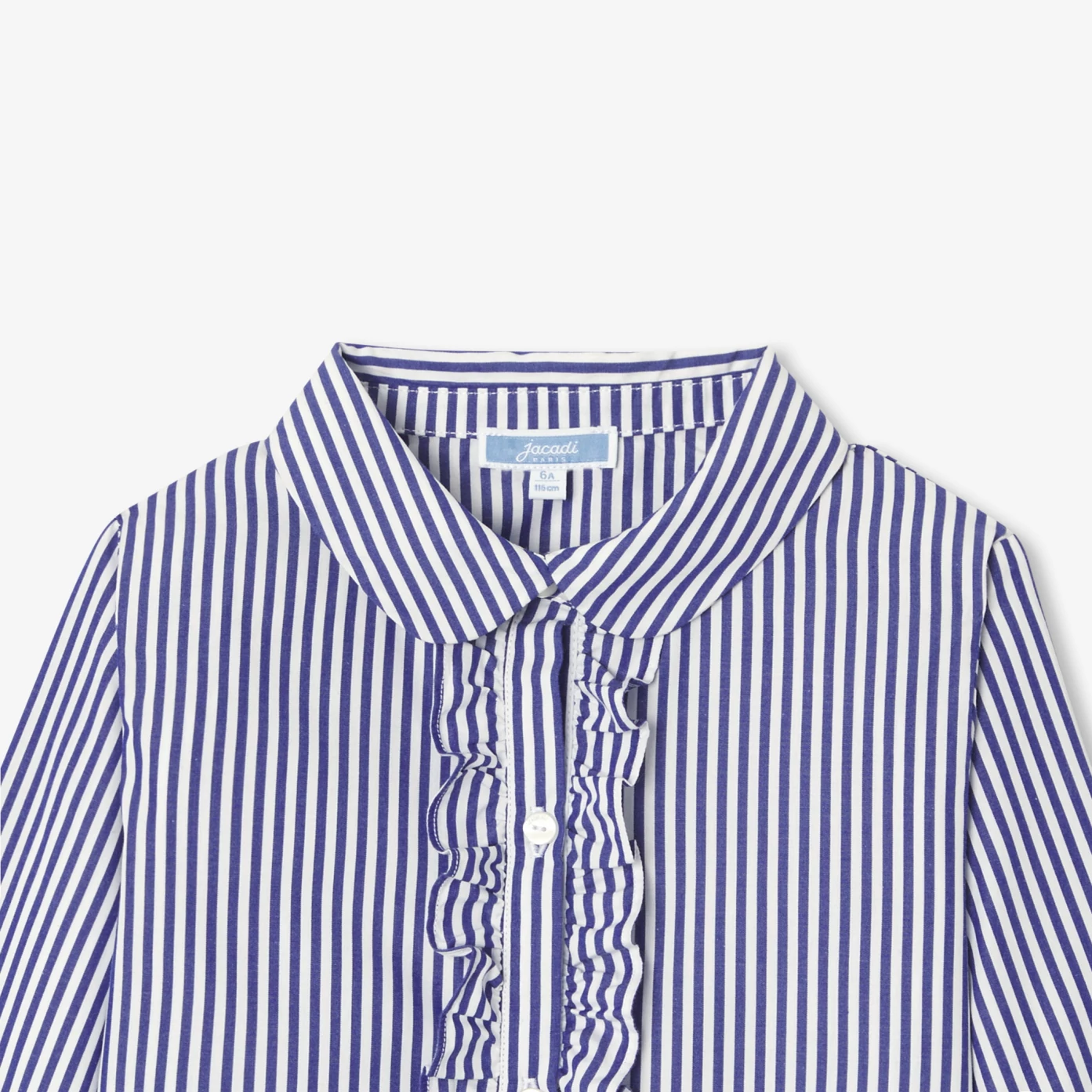 Chic et graphique, le vestiaire de rentrée tient toutes ses promesses avec cette chemise enfant fille. En popeline rayée, elle est sublimée de volants froncés surlignant la patte de boutonnage. Un modèle élégant à porter avec un jean large ou une jupe-culotte pour une silhouette preppy.- Chemise enfant fille en coton biologique- Patte de boutonnage volantée- Ouverture par boutons en nacre naturelle