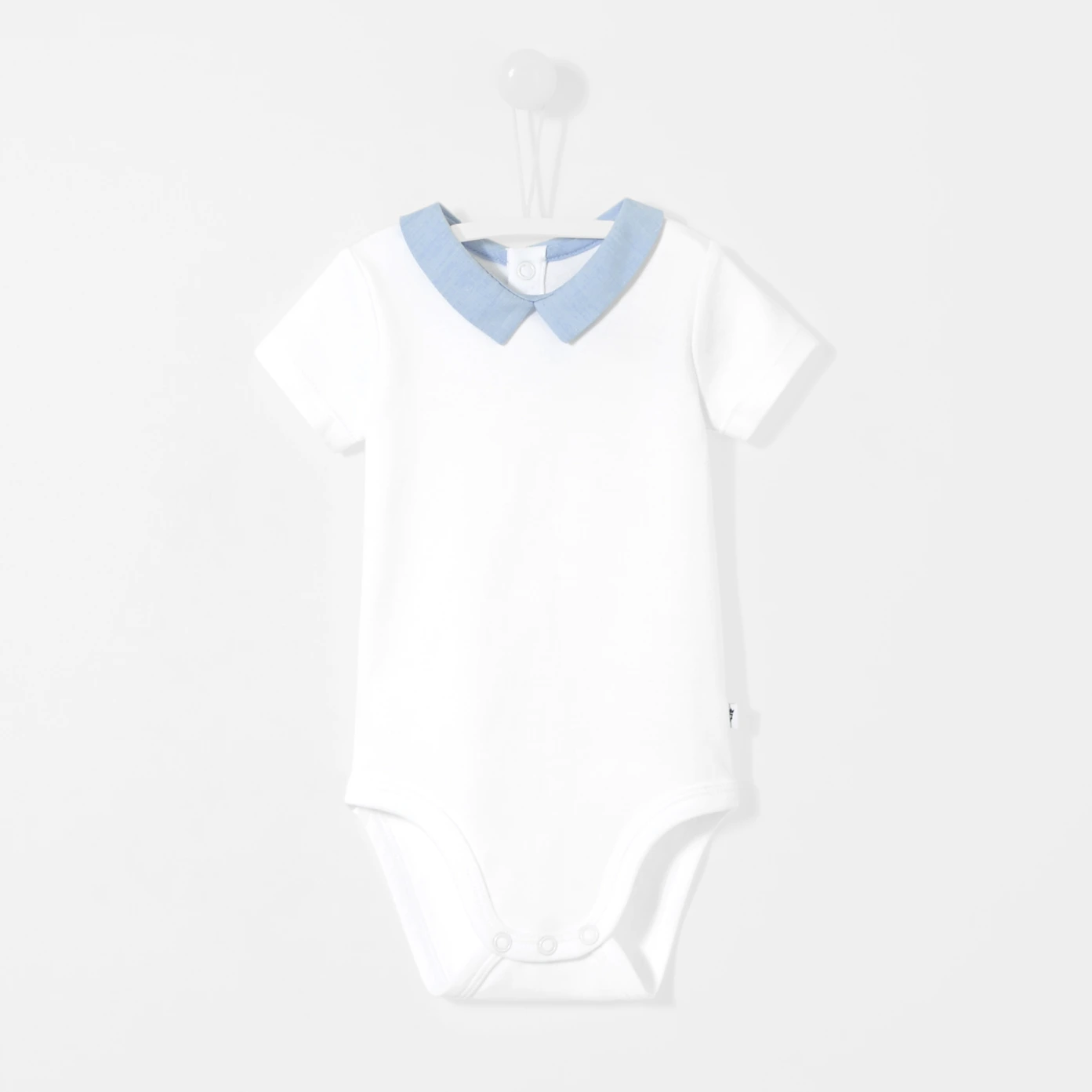 Indispensable du vestiaire de bébé, ce body en coton est doté d'un col en oxford apportant une touche d'élégance. Facile à enfiler grâce à son dos et son entrejambe pressionnés, il s'associera facilement à un bloomer ou une salopette et sera parfait pour compléter la valise de maternité.