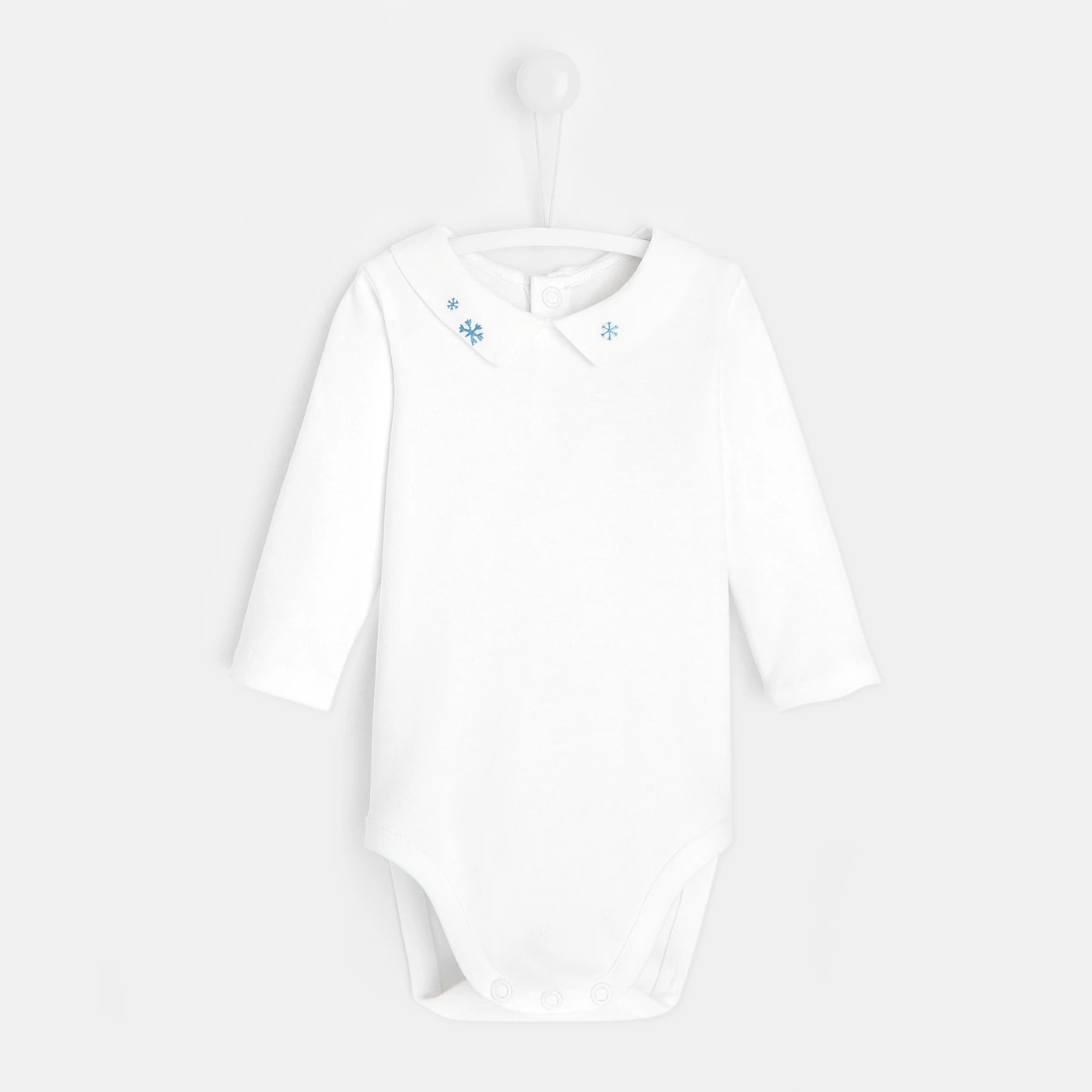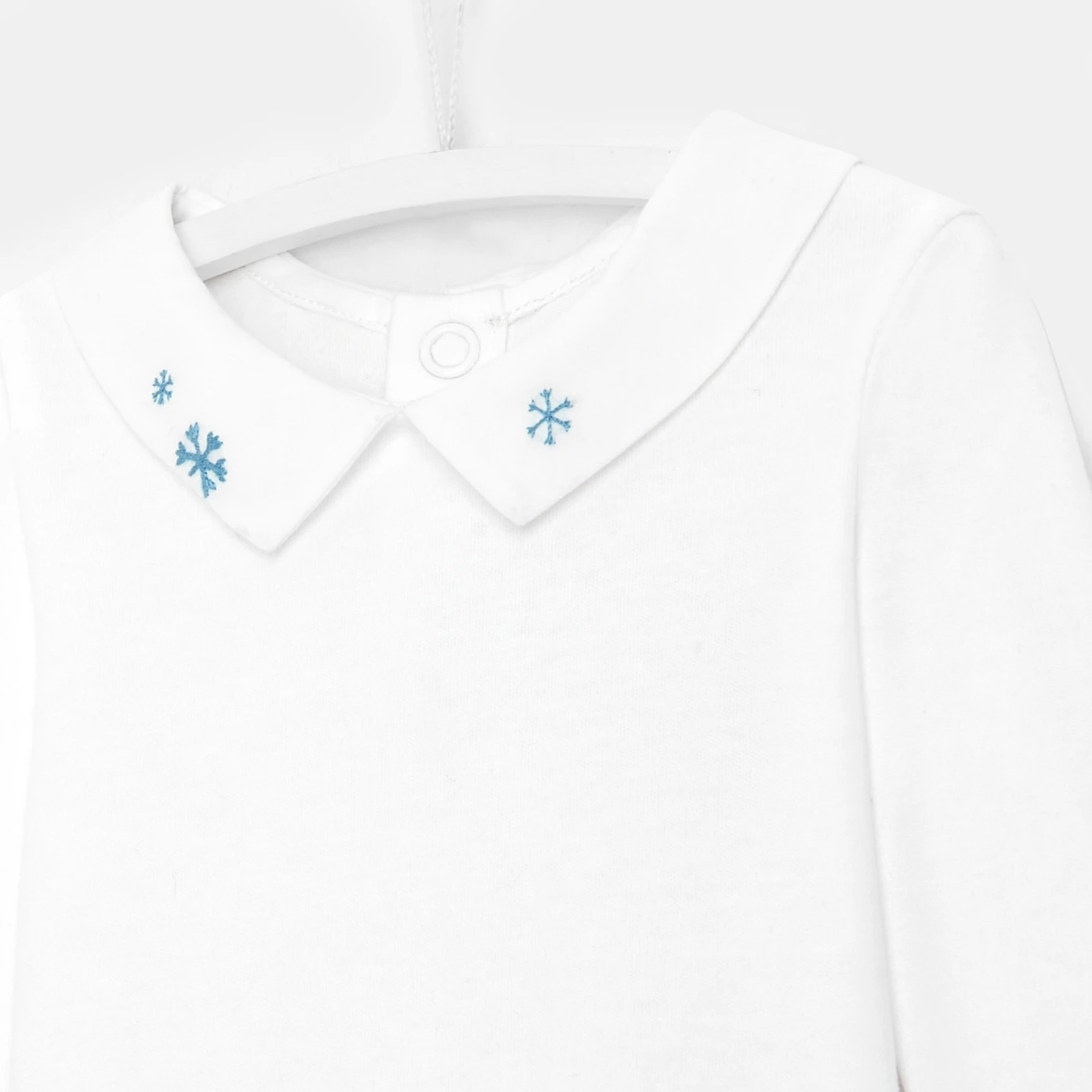 Sous un pull ou une combinaison pour braver l'hiver avec style, ce body en coton se démarque grâce à son col brodé de petits flocons. A la montagne ou en ville, glissez vite ce body dans le vestiaire de bébé. - Collection Petite neige - Col en popeline - Ouverture pressionnée au dos et à l'entrejambe
