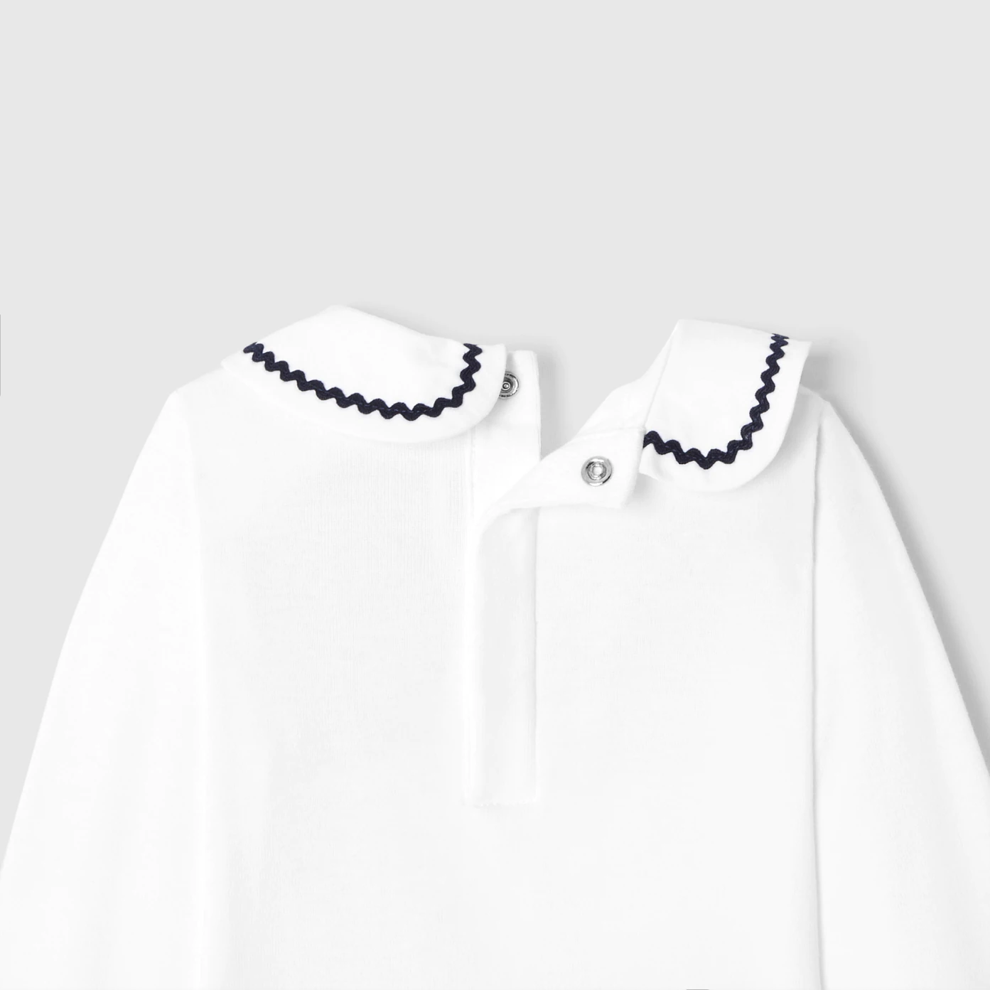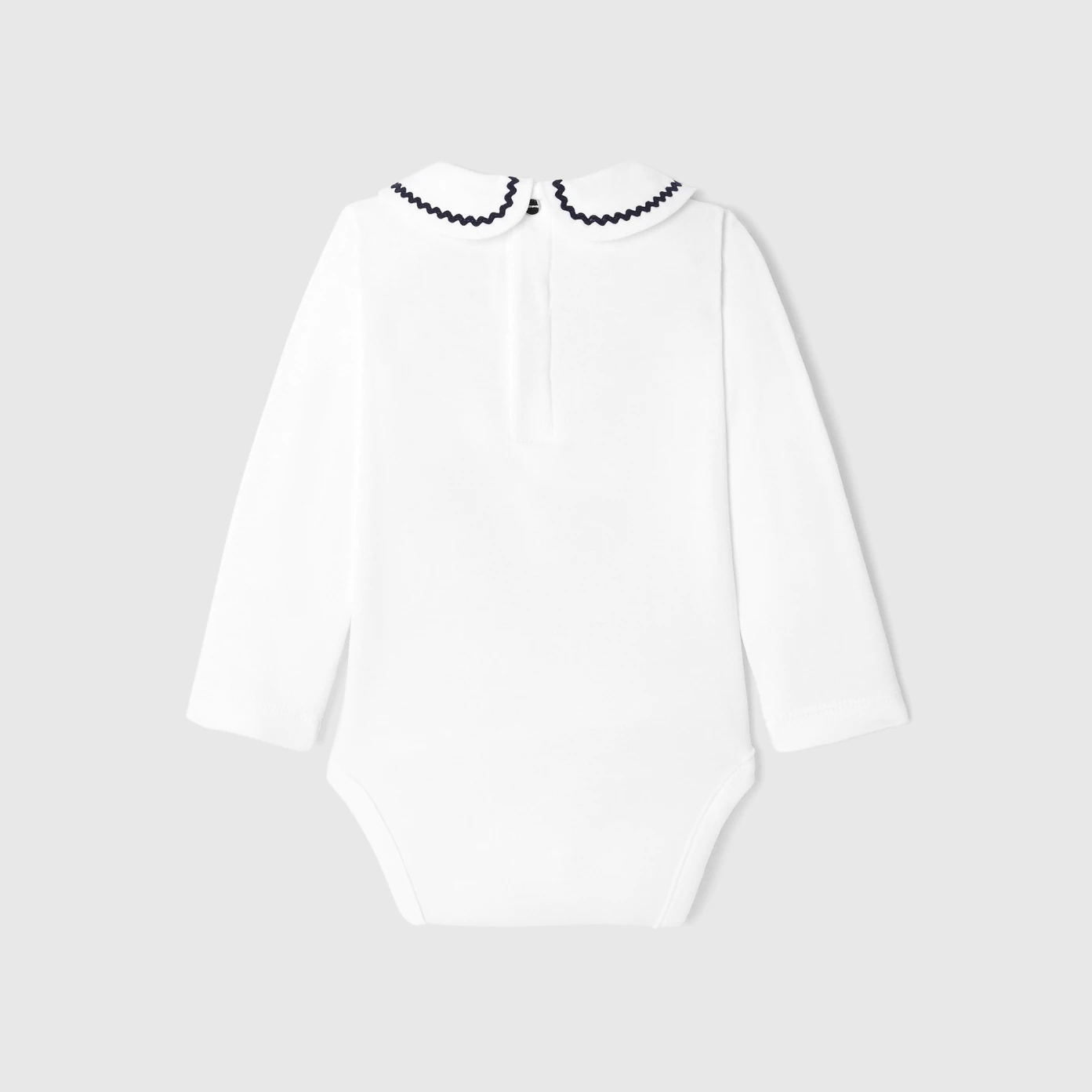 Des journées placées sous le signe de l'élégance avec ce body bébé fille. En coton biologique, son col est orné d'un ravissant ruban croquet contrasté. Idéal pour l'entrée de saison avec ses manches longues, vous pourrez l'accorder à une robe chasuble ou un short pour un déjeuner de famille.- Body bébé fille 100% coton biologique- Manches longues- Col serti d'un ruban croquet- Pressions au dos et à l'entrejambe