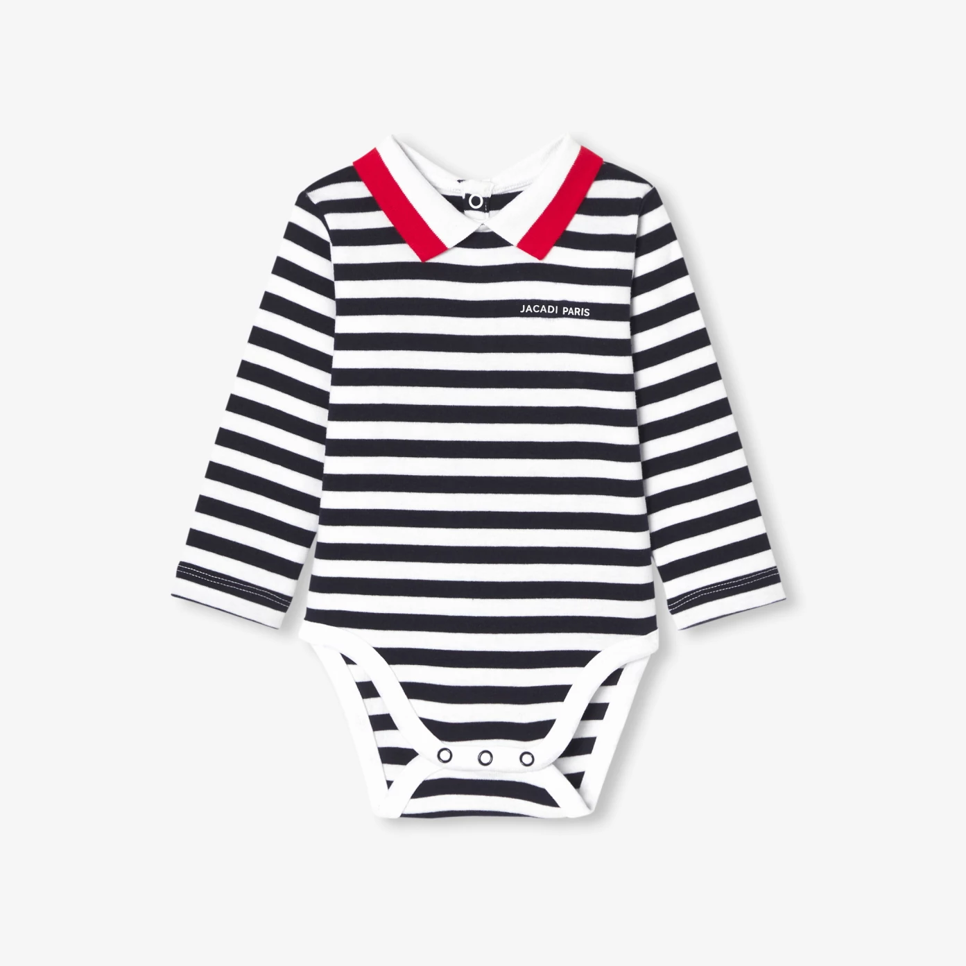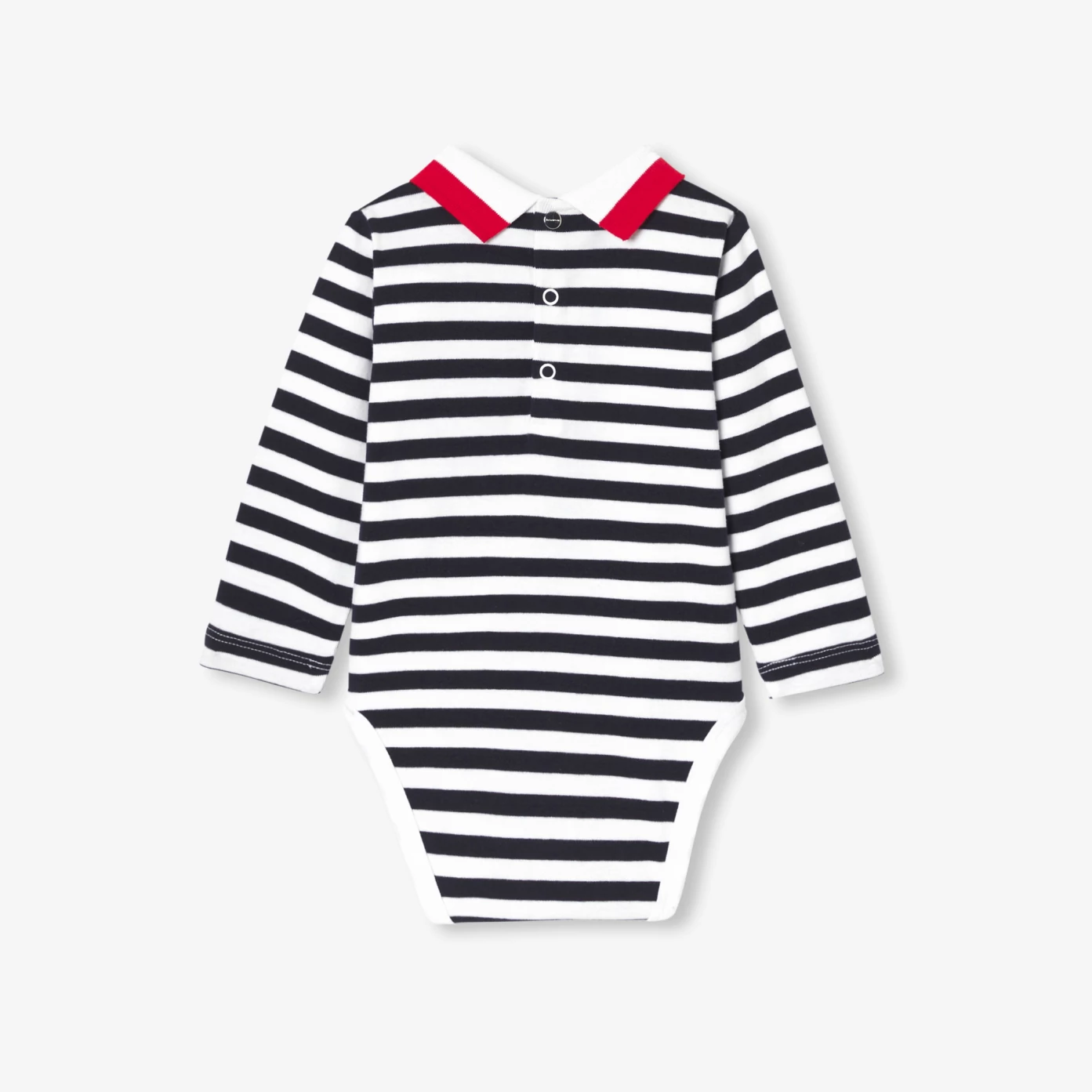 Esprit polo avec son col en bord-côte bicolore et ses rayures classiques, le body bébé garçon est décliné en coton biologique doux et souple. Facile à accorder à un jean ou à une salopette, ce basique sport chic s'ouvre au dos et à l'entrejambe pour un habillage facile. Un essentiel, parfait pour composer le vestiaire de bébé.- Body manches longues en coton biologique- Col polo en bord-côte- Ouverture pressionnée au dos et à l'entrejambe