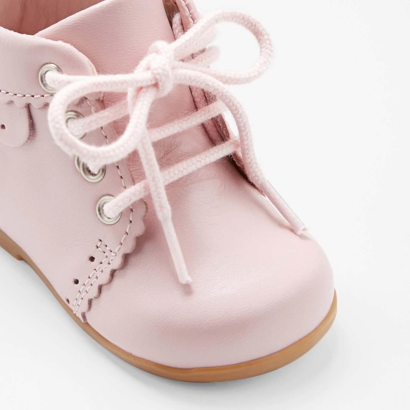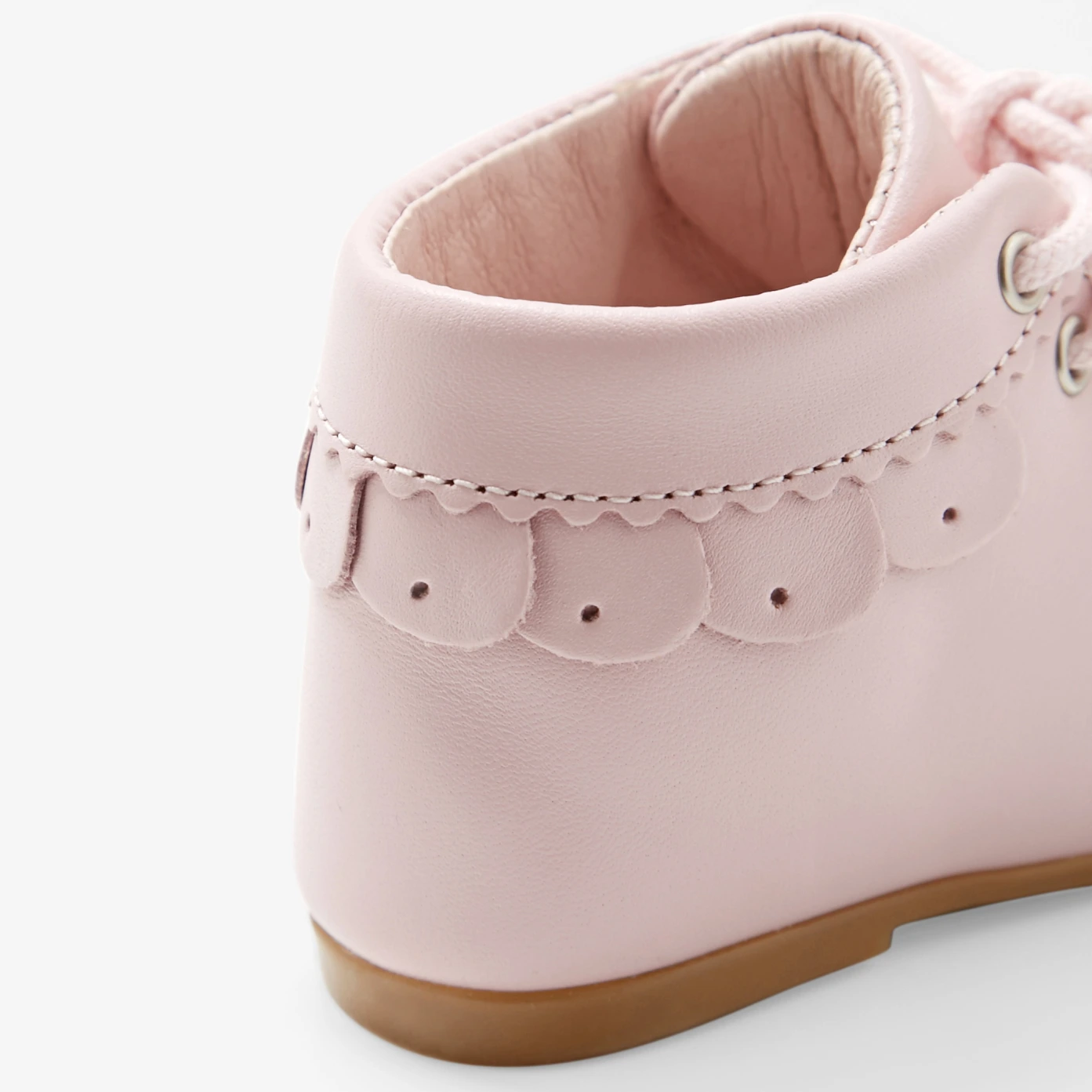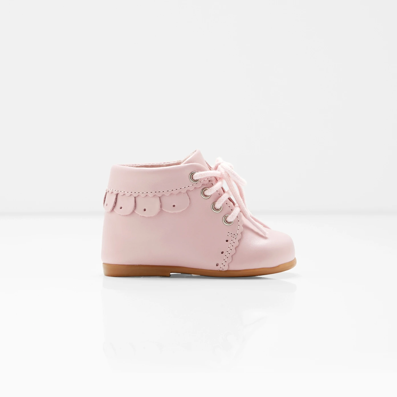 Savoir-faire et maîtrise des codes de l'élégance avec ces bottillons de premiers pas. En cuir lisse, ils sont joliment décorés d'un jeu de festons pétales inspirés de la collection de vêtements Jacadi. Montés sur une semelle en caoutchouc spécialement adaptée aux bébés qui commencent à se mettre debout, la tige apporte un maintien essentiel dans l'apprentissage de la marche. Col, malléoles, languette et semelle moussés pour le confort. Fabriqués au Portugal, pays reconnu pour son savoir-faire dans la confection de chaussures.