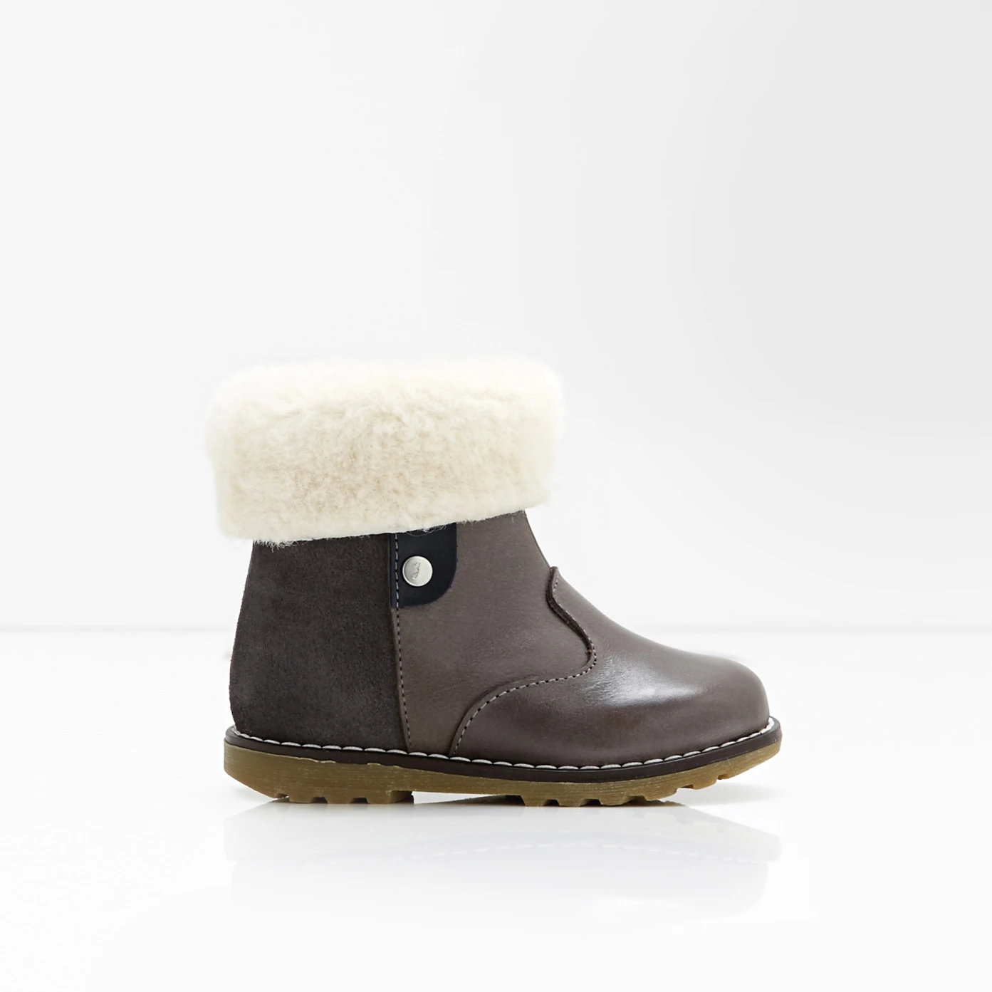Idéales pour la saison froide, ces boots fourrées trouveront une place de choix dans le vestiaire de bébé. Pensées pour les bébés qui viennent de faire leurs premiers pas, elles sont montées sur une semelle adaptée qui maintiendra et épousera bien la forme du pied. Joliment parées d'un col effet laine de mouton pour encore plus d'originalité et apporter un maintien parfait de la cheville, elles sont montées sur une semelle italienne chaussant 1/2 à 1 pointure au dessus de la pointure initiale et sont en éléstomère pour éviter de glisser et apporter stabilité elles sont zippées sur le côté. Semelle intérieure en cuir.