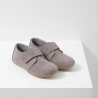 Chaussons couleur taupe qui maintiennent bien le pieds grâce à leur fermeture par scratch sur le devant.