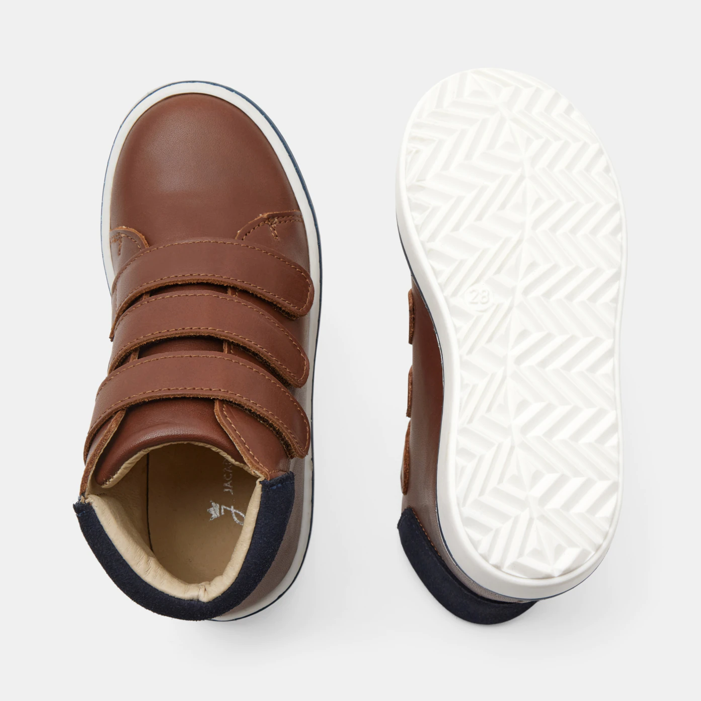 Incontournables du vestiaire des garçons, cette saison les tennis montantes se veulent modernes et élégantes. En cuir lisse et croûte de cuir et rehaussées d'une semelle à liseré contrasté, ces tennis se ferment par brides velcro. À porter dès la rentrée, elles s'accorderont aussi bien avec un jean et une veste Teddy ou avec un pantalon en toile et une chemise pour une silhouette casual chic. - Cuir lisse ou croûte de cuir - Col et languette moussés - Fermeture par brides velcro - Fabriquées au Portugal - Ce modèle chausse légèrement plus grand que la pointure habituelle