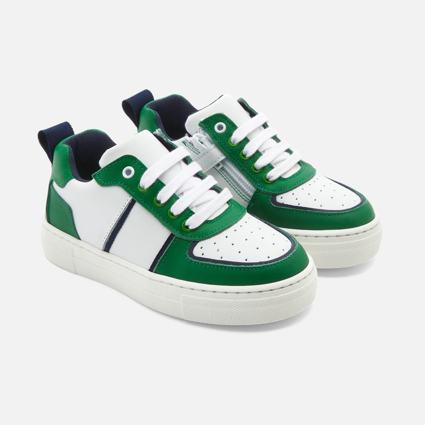 À porter sur les terrains de sport et le pavé citadin, les baskets enfant dévoilent un look urbain. En cuir et color block, lacets élastiqués et velcro finalisent ce modèle, accordez-les à un jogging ou un jean. - Fabriquées au Portugal- Cuir lisse- Doublure en cuir et textile- Col et languette moussés- Semelle intérieure amovible- Lacets élastiqués et bride velcro - Ce modèle chausse normalement