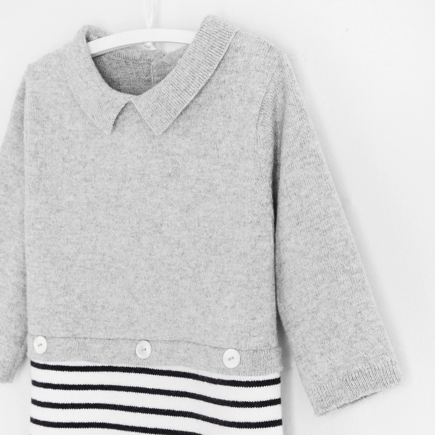 Cette saison, Jacadi signe une combinaison pleine de charme et d'élégance. Effet trompe-l'oeil, elle dévoile un haut façon polo en point jersey et une base rayée avec des détails de boutons en nacre naturelle à la ceinture. Chaude et confortable, cette combinaison pour bébé garçon de la collection Trousseau s'ouvre par boutons en nacre naturelle au dos et pressions invisibles à l'entrejambe pour un habillage facile. Idéale pour le quotidien de bébé, elle fera une belle idée de cadeau à offrir.