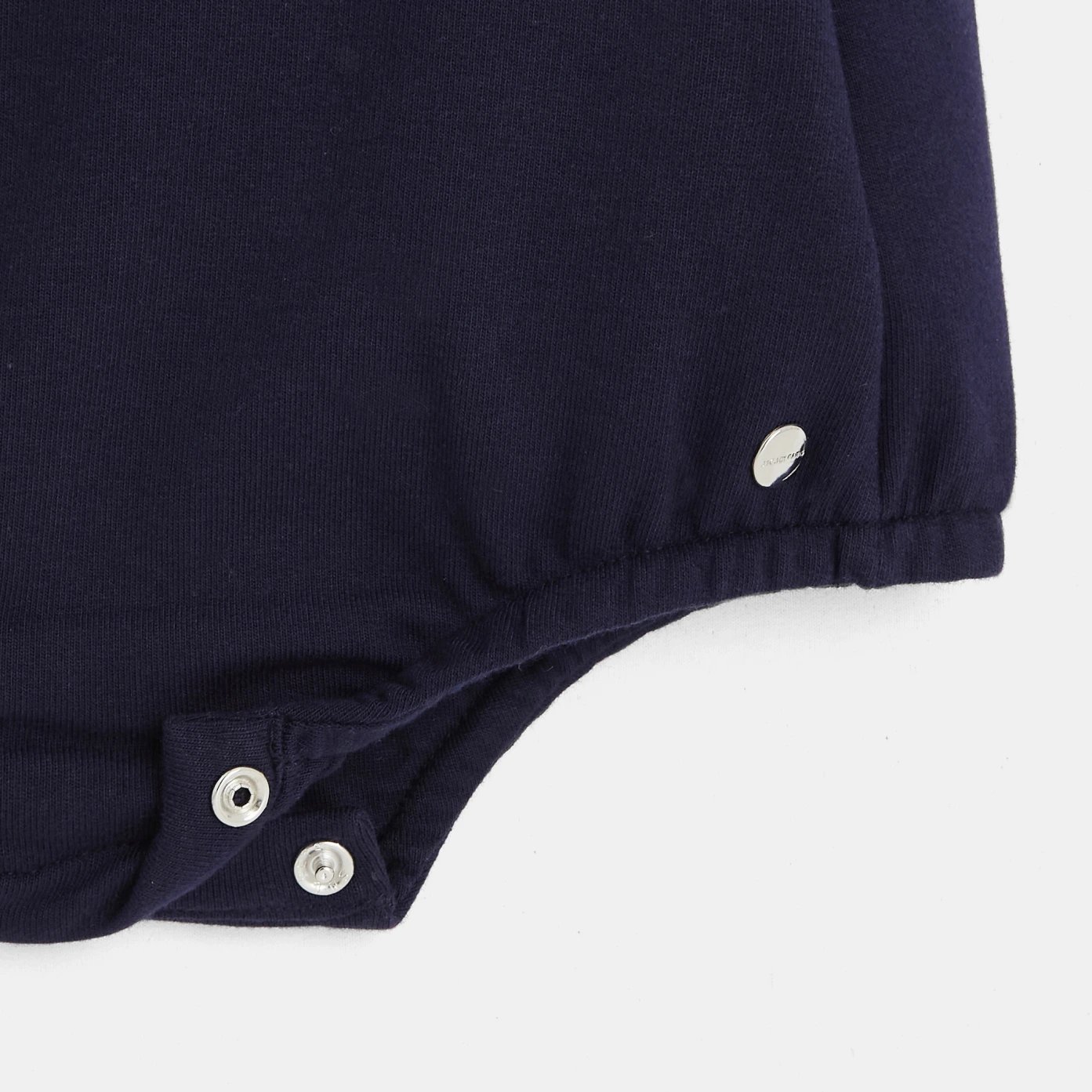 Pièce emblématique du vestiaire de bébé, laissez-vous séduire par le charme rétro chic de ce bloomer en molleton. Idéal pour les premiers jours de printemps, accordez cette petite pépite à un body col polo et des petites baskets. - Collection Petit Paris - Ouverture par pressions aux épaules et à l'entrejambe - Disponible jusqu'au 18 mois
