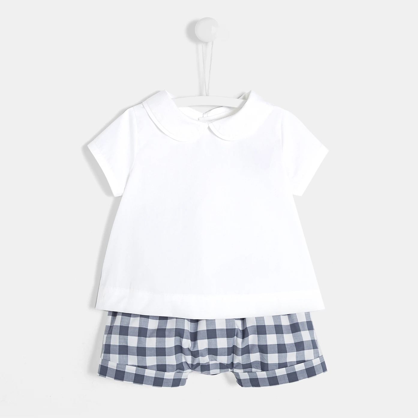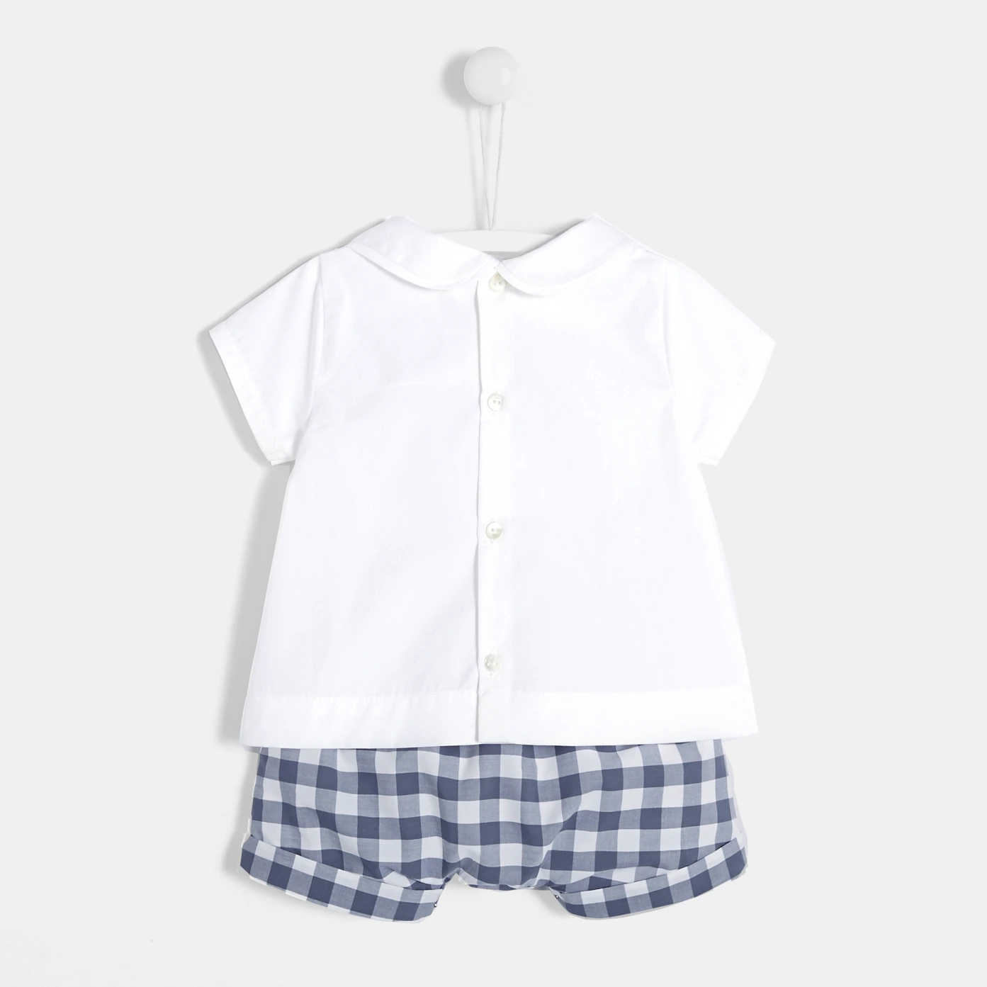 Cadeau idéal à offrir à un nouveau-né, cet ensemble réunit l'élégance d'un haut en popeline et l'originalité d'un short en Vichy. Taillé pour le plein été pour les balades au parc ou les vacances en front de mer, ce duo chic pourra aussi être porté lors d'un événement particulier. - Collection Hello demain - 100% coton organique - Ouverture boutonnée au dos - Short à taille élastiquée - Existe jusqu'au 18 mois