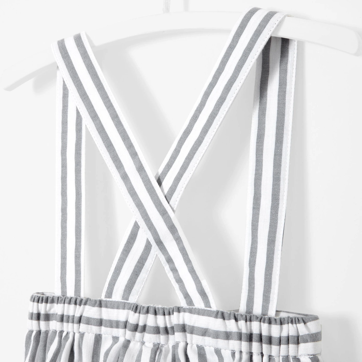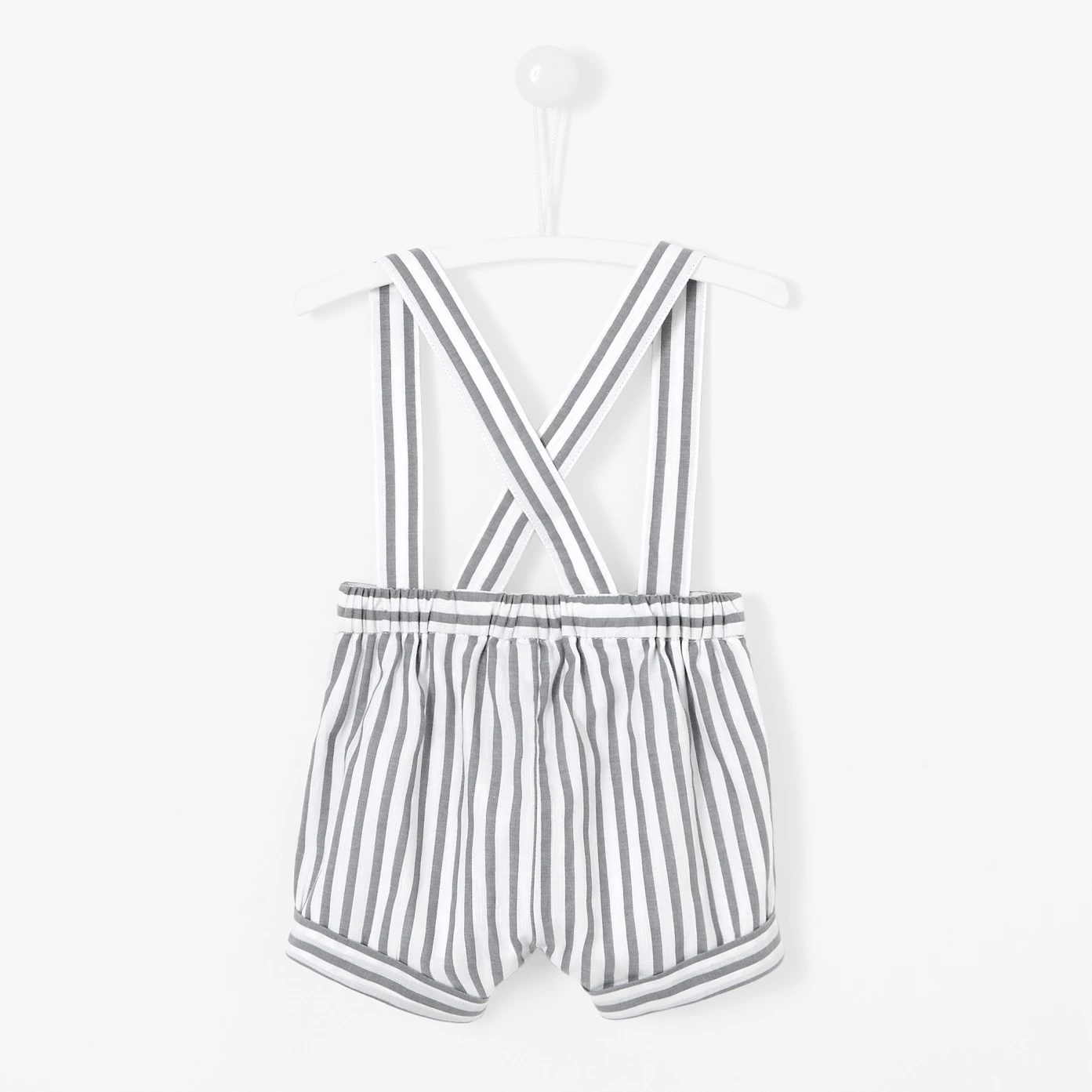 Cette saison, le short se dote de bretelles pour habiller bébé avec élégance et originalité. En coton et lin très agréable à porter, il est entièrement doublé en popeline de coton. Ouvert par boutons en nacre naturelle, il est à associer avec un body à col ou un t-shirt.