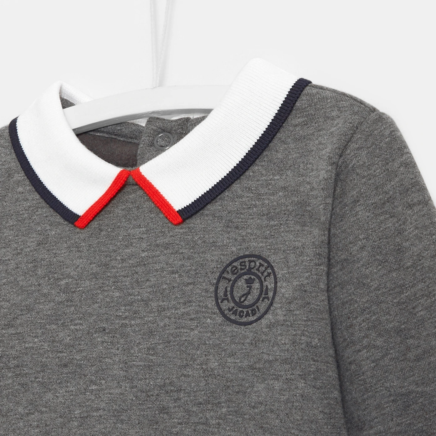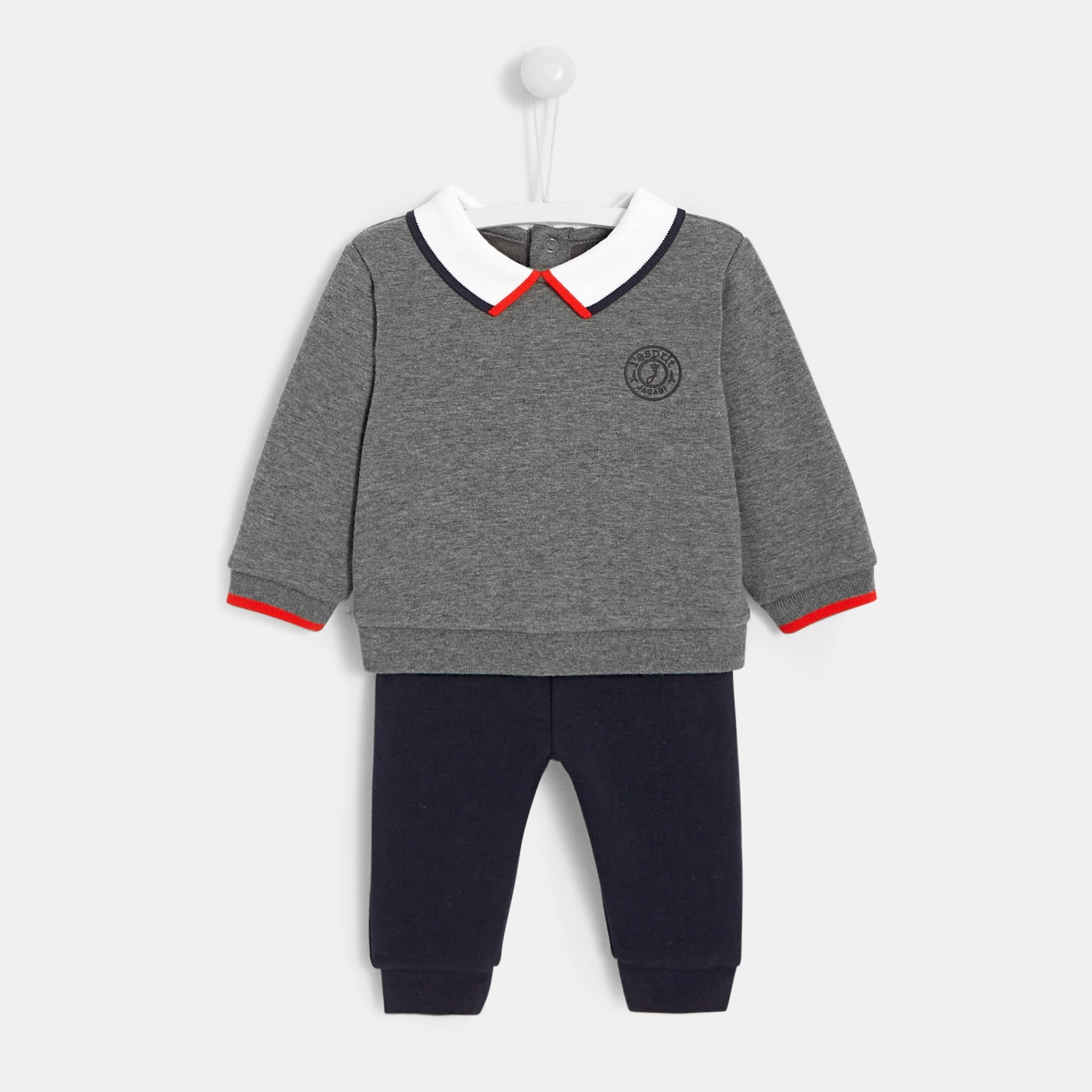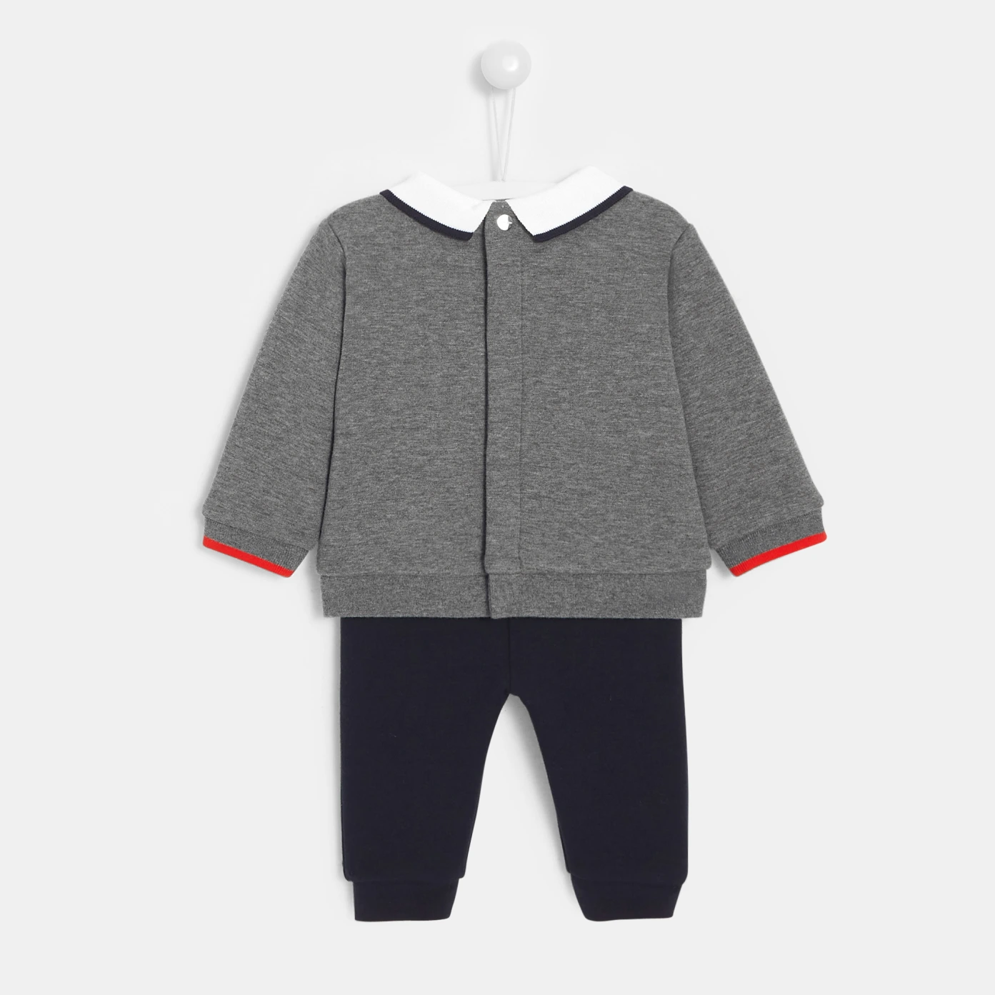 Esprit uniforme d'écolier modernisé par une matière sport, cet ensemble bébé garçon est parfait pour l'automne. En molleton, l'intérieur est en polaire pour apporter douceur et confort à bébé. - Collection Petite école - Molleton exterieur et interieur polaire - Ouverture pressionnée au dos - Pantalon à taille élastiquée