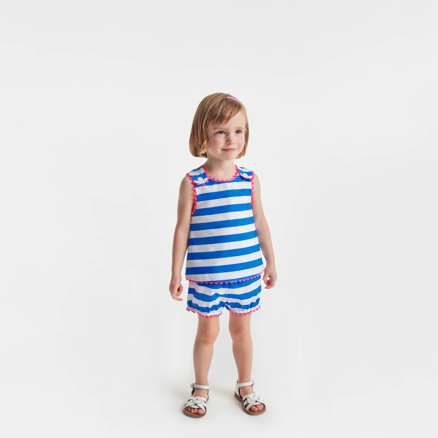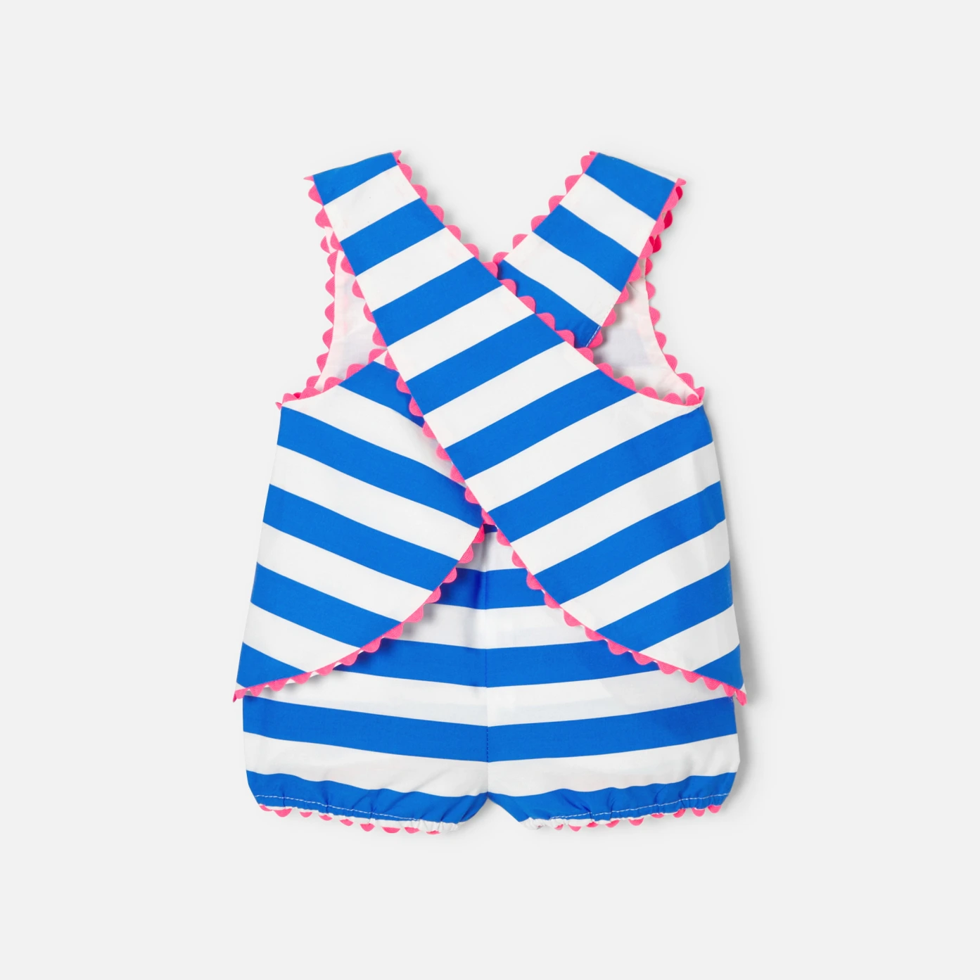 Esprit riviera, l'ensemble bébé fille s'approprie les codes du chic contemporain. Imprimé de maxi rayures, top à bretelles croisées au dos et short composent ce duo aux détails fluo pop parfait pour les vacances au bord de l'eau.- Ensemble short bébé fille- Top à bretelles croisées dos- Pressions en gomme blanche- Poche plaquée sur plastron- Short à taille élastiquée réglable- Finitions en ruban croquet rose fluo