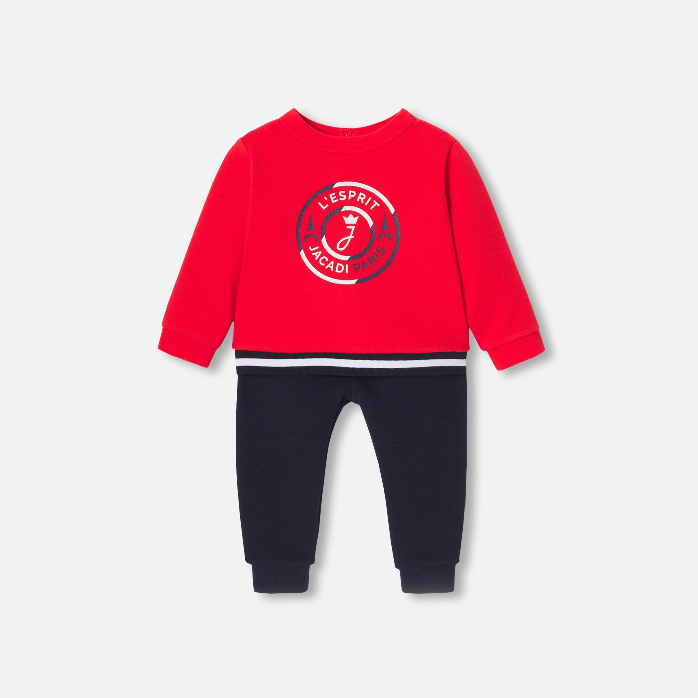 Retrouvez tout l'esprit Jacadi avec cet ensemble confort bébé garçon en molleton. Composé d'un sweat imprimé et d'un pantalon souple, accordez ce duo french touch à des baskets pour un quotidien casual et urbain.- Coton biologique- Sweat logo floqué- Base en bord-côte rayé- Pantalon à taille élastiquée