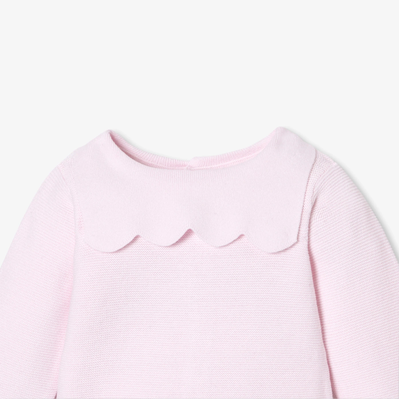 Chic, cosy et bien pensé, le premier vestiaire de bébé tient toutes ses promesses avec cet ensemble bébé fille. En coton biologique, tricoté en point mousse souple, un haut à col festonné et un pantalon à taille élastiquée composent ce duo idéal en guise de première tenue ou pour accompagner le quotidien. Une belle idée de cadeau de naissance à offrir.- Ensemble en coton biologique maille point mousse- Col festonné- Ouverture au dos par boutons en nacre naturelle- Pantalon à taille élastiquée- Jolie idée de cadeau de naissance à offrir ou à s'offrir