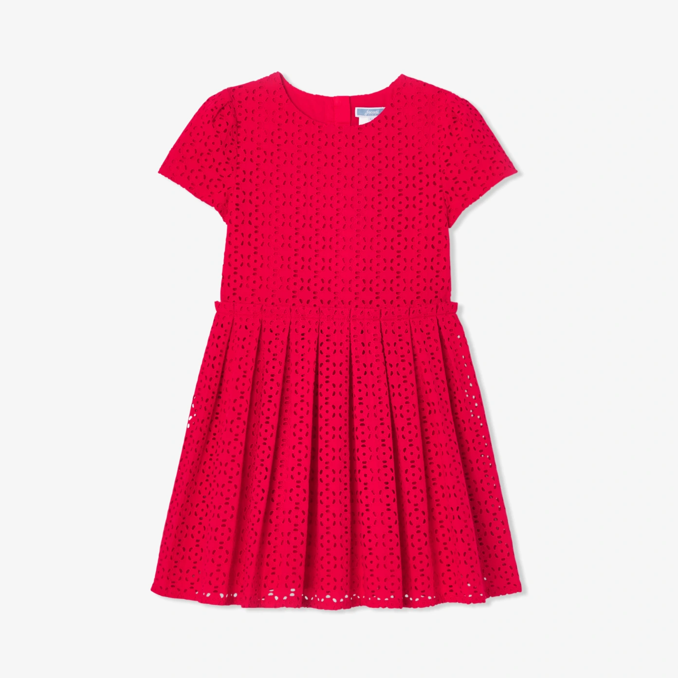 Charme d'une broderie anglaise et élégance d'un coloris rouge profond, cette robe enfant fille promet une saison chic et colorée. Structurée d'un détail ruché à la taille, elle est dotée d'une doublure apportant volume et confort. Une robe facile à vivre à accorder à des babies et une veste en jean pour un look chic et parisien.- Robe enfant fille en broderie anglaise- Manches courtes- Point nid d'abeille ruché à la taille- Doublure - Ouverture par zip invisible au dos