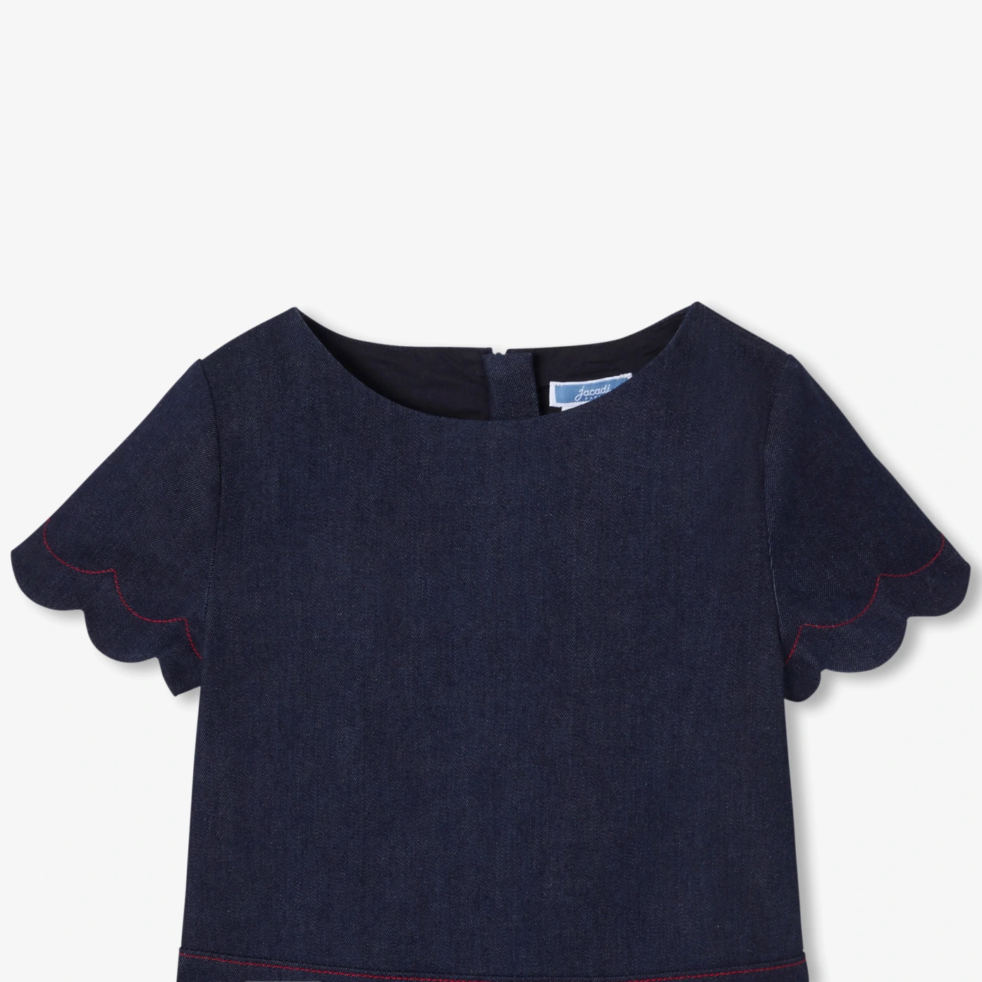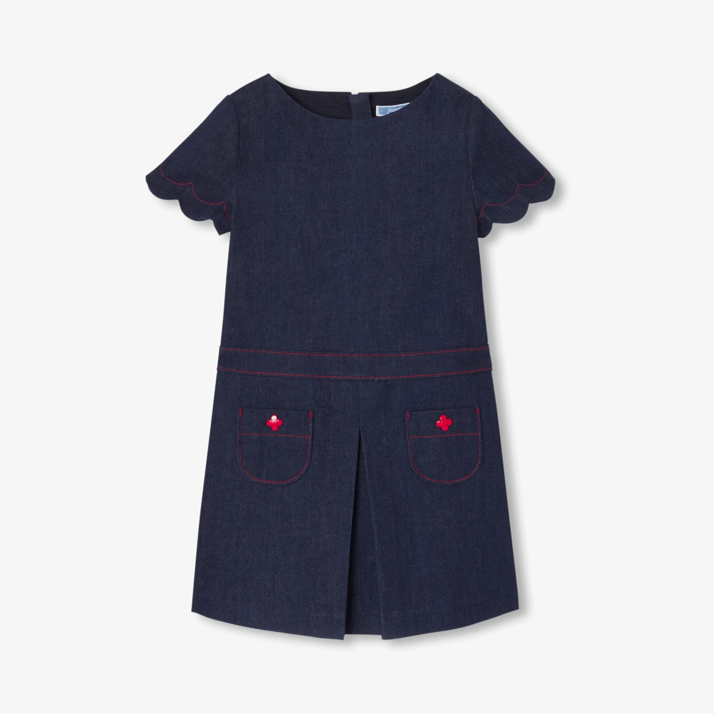 Chic et citadine, cette robe enfant fille en jean brut multiplie les détails signature. Coupe trapèze, manches courtes festonnées, plis creux devant et poches plaquées ornées d'un bouton fleur subliment cette robe doublée au charme très parisien.- Robe en jean fille coton biologique majoritaire- Coupe trapèze- Manches courtes festonnées- Découpes à la taille- Poches plaquées ornées d'un bouton fleur- Pli creux devant- Surpiqûres contrastées- Doublure en coton- Ouverture par zip invisible au dos
