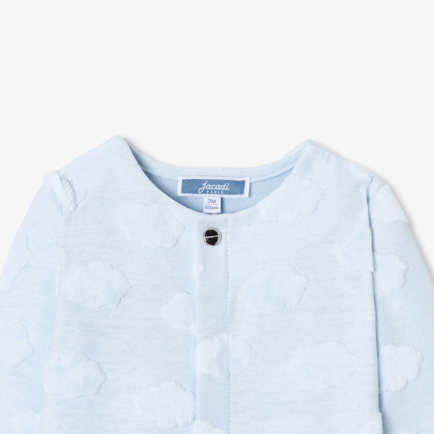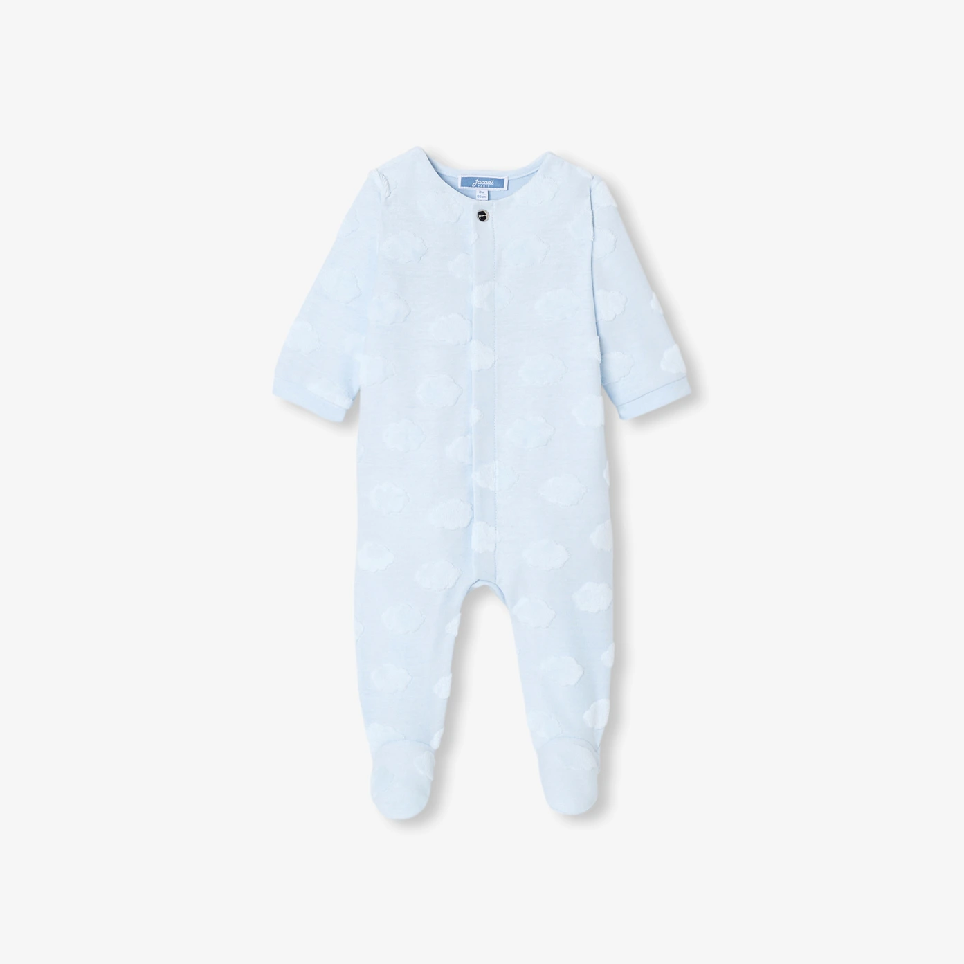 Invitation à la douceur et à la rêverie, le pyjama bébé en jersey de coton transporte dans un univers enchanteur avec son motif nuage. Idéal pour composer la valise de maternité et accompagner les premiers jours du nouveau-né, sa coupe pratique à ouverture invisible devant assure un habillage facile et un confort optimal durant les siestes et les nuits.- Pyjama bébé garçon en coton biologique majoritaire- Jersey fantaisie à motif nuage- Ouverture pressionnée devant- Jolie idée de cadeau de naissance à offrir ou à s'offrir