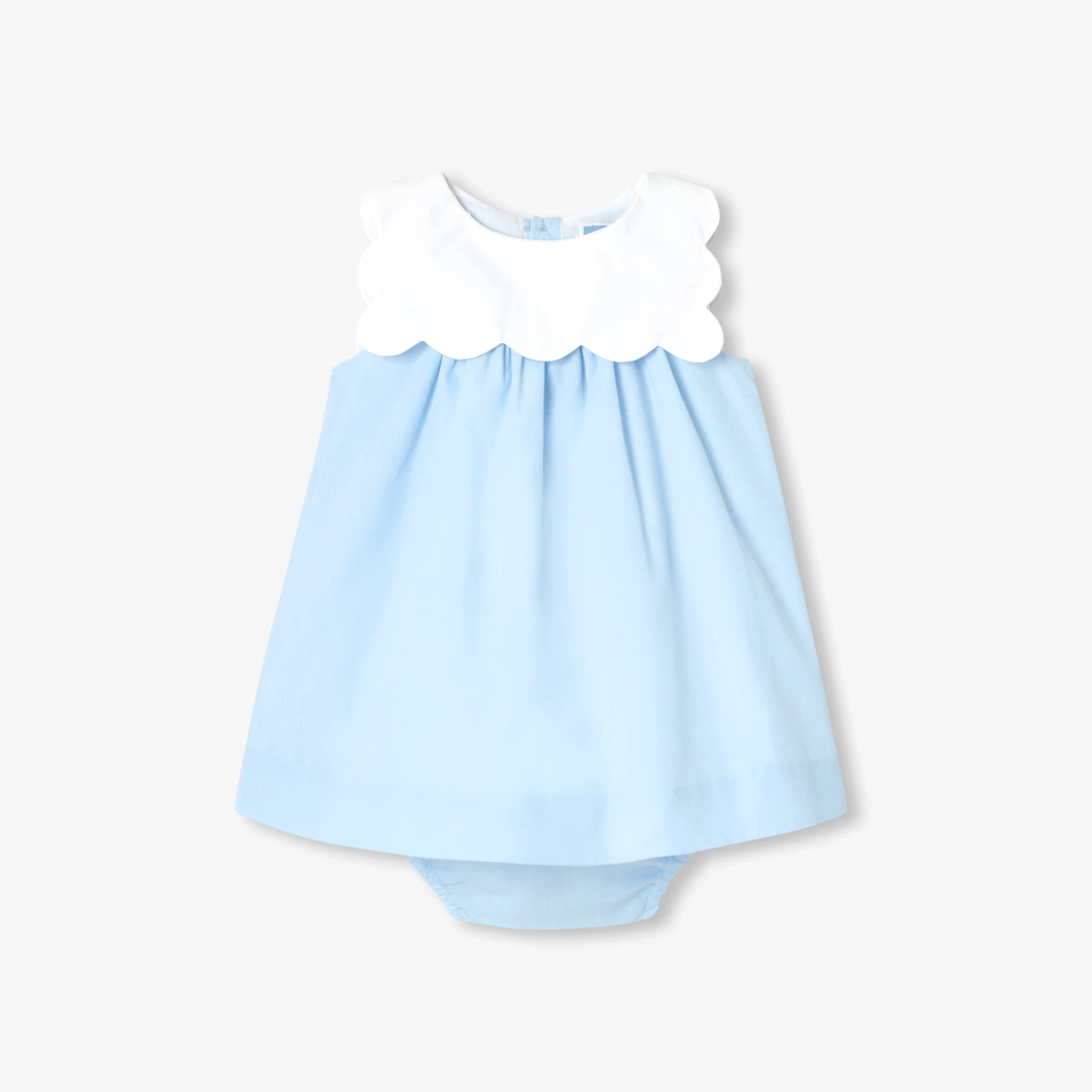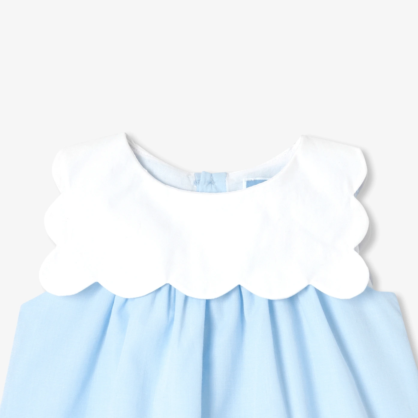Emblématique du vestiaire Jacadi, la robe chasuble bébé fille est déclinée dans un élégant fil à fil de coton pour les beaux jours. Sublimée d'un col festonné en popeline blanche, entièrement doublée en popeline, une culotte assortie complète cette robe au chic très parisien à offrir en cadeau de naissance et à porter pour un évènement.- Robe chasuble bébé fille en fil à fil de coton- Col festonné façon vareuse en popeline- Doublure en popeline- Ouverture au dos par boutons en nacre naturelle- Culotte à taille élastiquée assortie