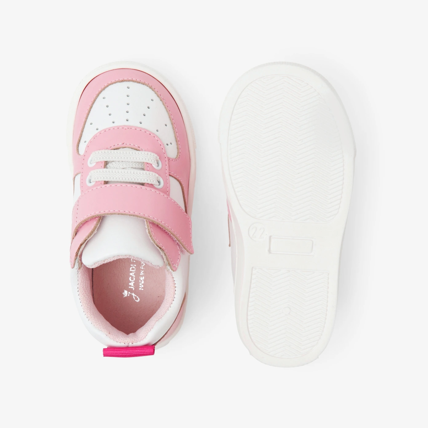 Les baskets bébé fille adoptent la tendance color block pour le printemps. Inspirées des modèles 90's avec leur semelle épaisse et leur bout perforé, lacets élastiqués et bride velcro ont été ajoutés pour un enfilage facile. Parfaites pour compléter un look casual ou moderniser une robe, elles joueront sur tous les terrains cette saison.- Fabriquées au Portugal- Cuir lisse- Col et languette moussés- Semelle antidérapante- Ouverture velcro et lacets élastiqués- Ce modèle chausse normalement Comment trouver la bonne pointure ? Procurez-vous le pédimetre. Imprimez-le sur une feuille A4 et suivez les instructions.