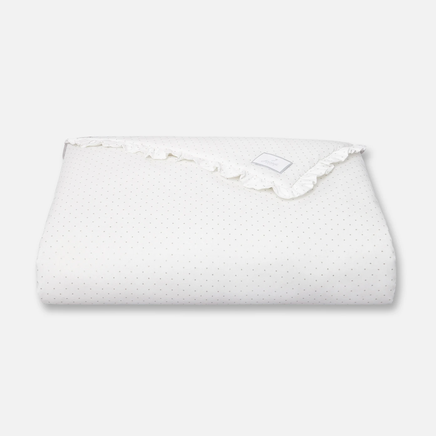 Edredon parfait pour accompagner bébé durant ses temps de repos. Il peut être accordé avec le joli tour de lit en pois lurex de la même collection pour donner un esprit cosy à sa chambre. Dimensions : 140 x 90 cm. Utilisation conseillée à partir de 9 mois.