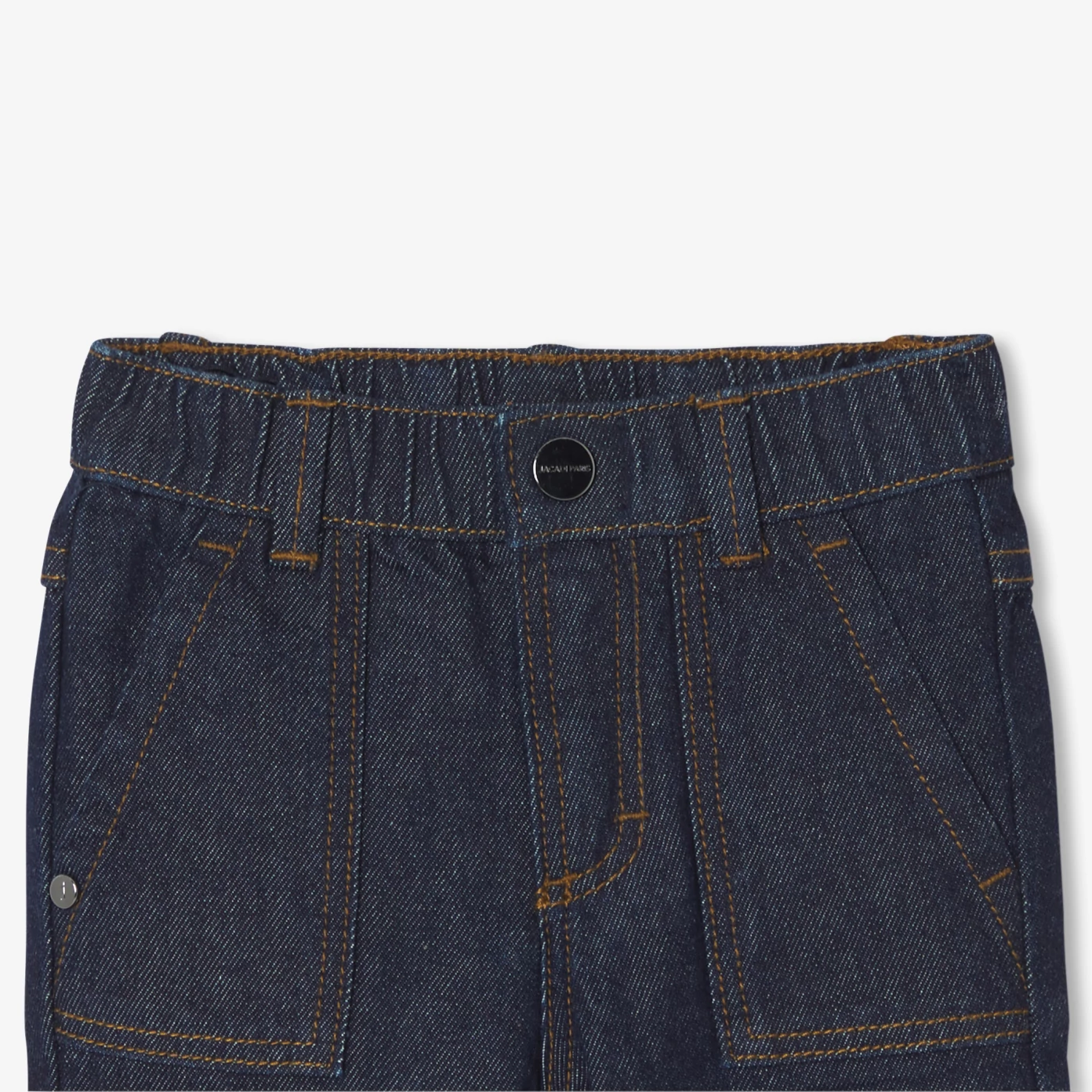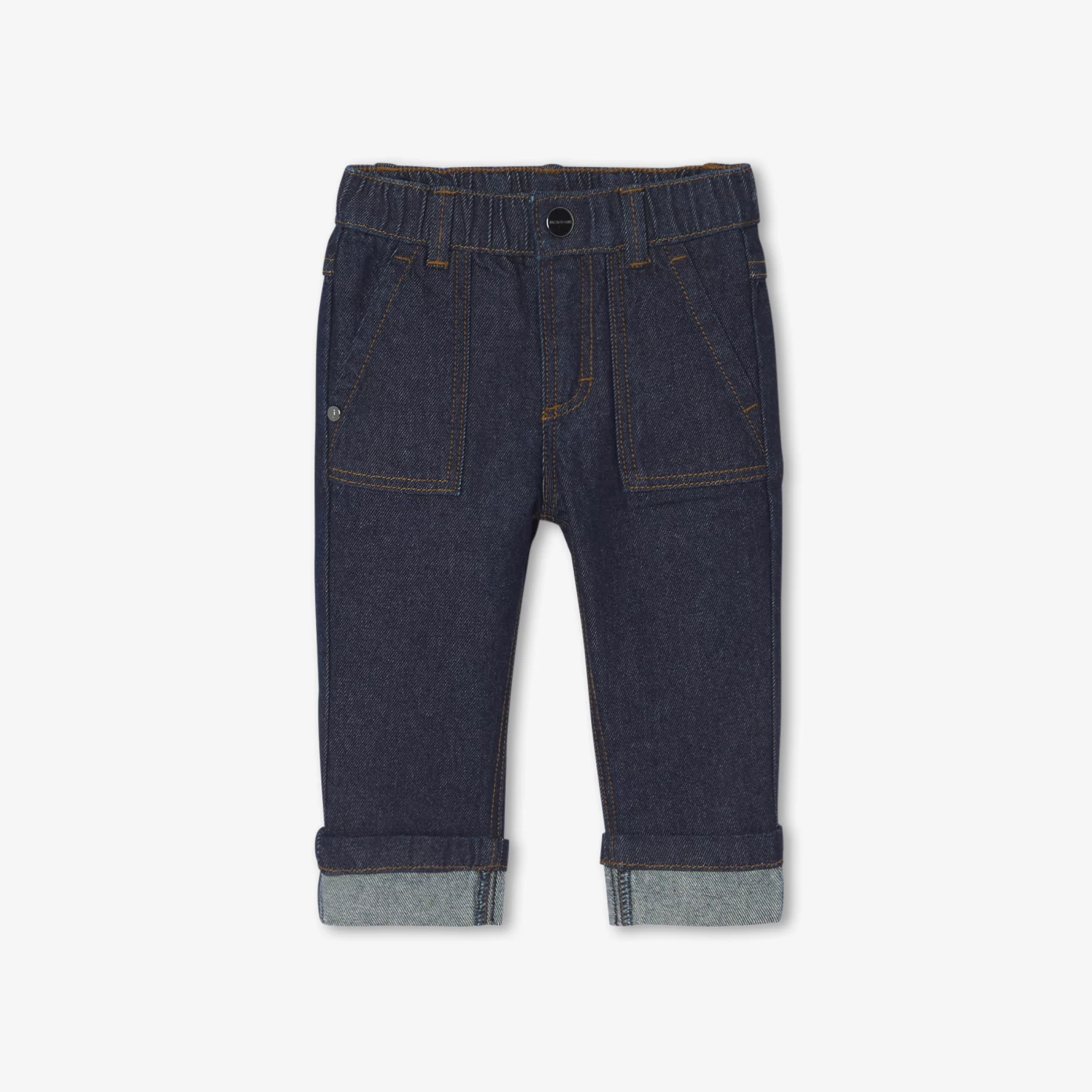 Inspiré du jean en toile japonaise, le jean bébé mixe l'authenticité du denim brut à la modernité de poches cargo et revers en bas des jambes. Robuste et confortable avec sa ceinture élastiquée réglable, ce modèle taillé pour les petits urbains s'accordera aussi bien à une chemise qu'à un pull camionneur dès la rentrée.- Jean bébé en denim brut- Esprit toile japonaise- Poches worker- Revers en bas de jambes- Taille élastiquée ajustable