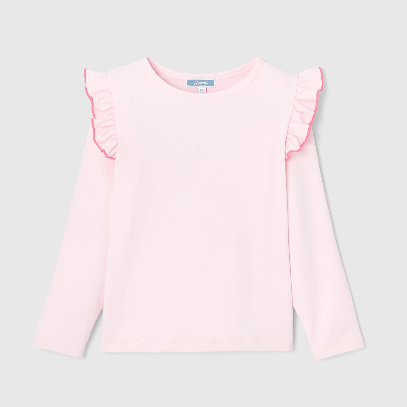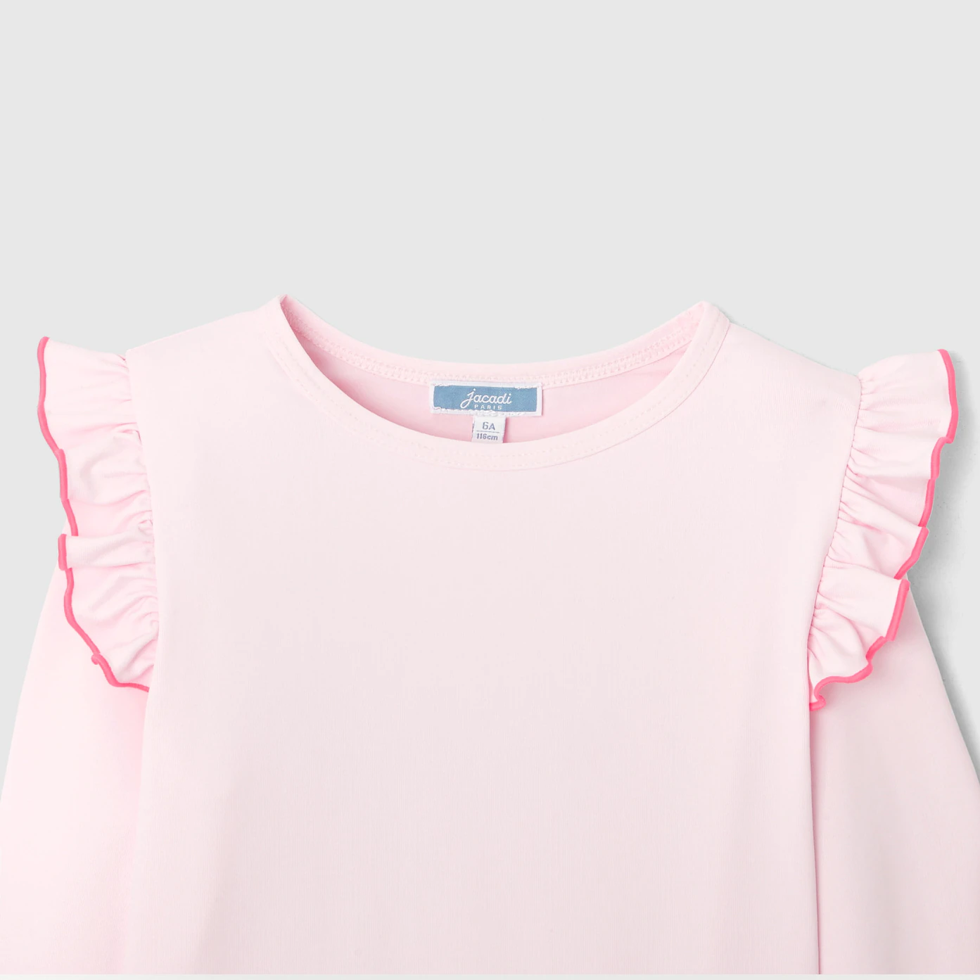 Créé pour protéger la peau du soleil grâce à sa matière anti-UV, ce t-shirt de bain est en microfibre et élasthanne. Sublimé d'empiècements volantés aux emmanchures, il s'ouvre au dos par velcro pour un habillage facile. À accorder à une culotte de bain, votre fille ne le quittera pas des vacances. - Ouverture velcro au dos - Empiècements volantés - Attention : les parties du corps exposées au soleil nécessitent une protection solaire à indice élevé ainsi que le port d'un chapeau et de lunettes