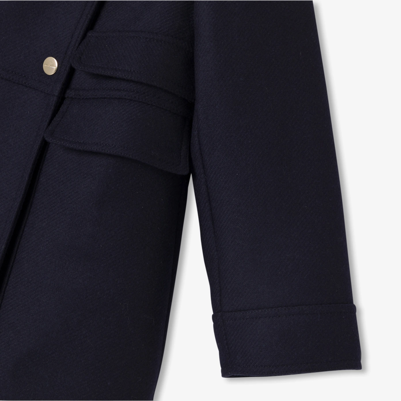 Le vestiaire de rentrée s'étoffe de pièces aussi chics que pratiques comme ce manteau enfant fille. Esprit manteau anglais en lainage couvrant avec ses poches trompe-l'œil et ses vraies poches à rabat, capuche amovible, doublure et léger ouatinage ont été ajoutés pour plus de chaleur. Porté sur une robe en jean ou avec un pantalon large et des salomés pour un look preppy et citadin, il est parfait pour le quotidien.- Manteau fille en lainage- Doublure et léger ouatinage- Capuche amovible- Poches trompe-l'œil sur buste- Vraies poches à rabat sous la taille- Ouverture croisée par pressions métallisées- Base évasée