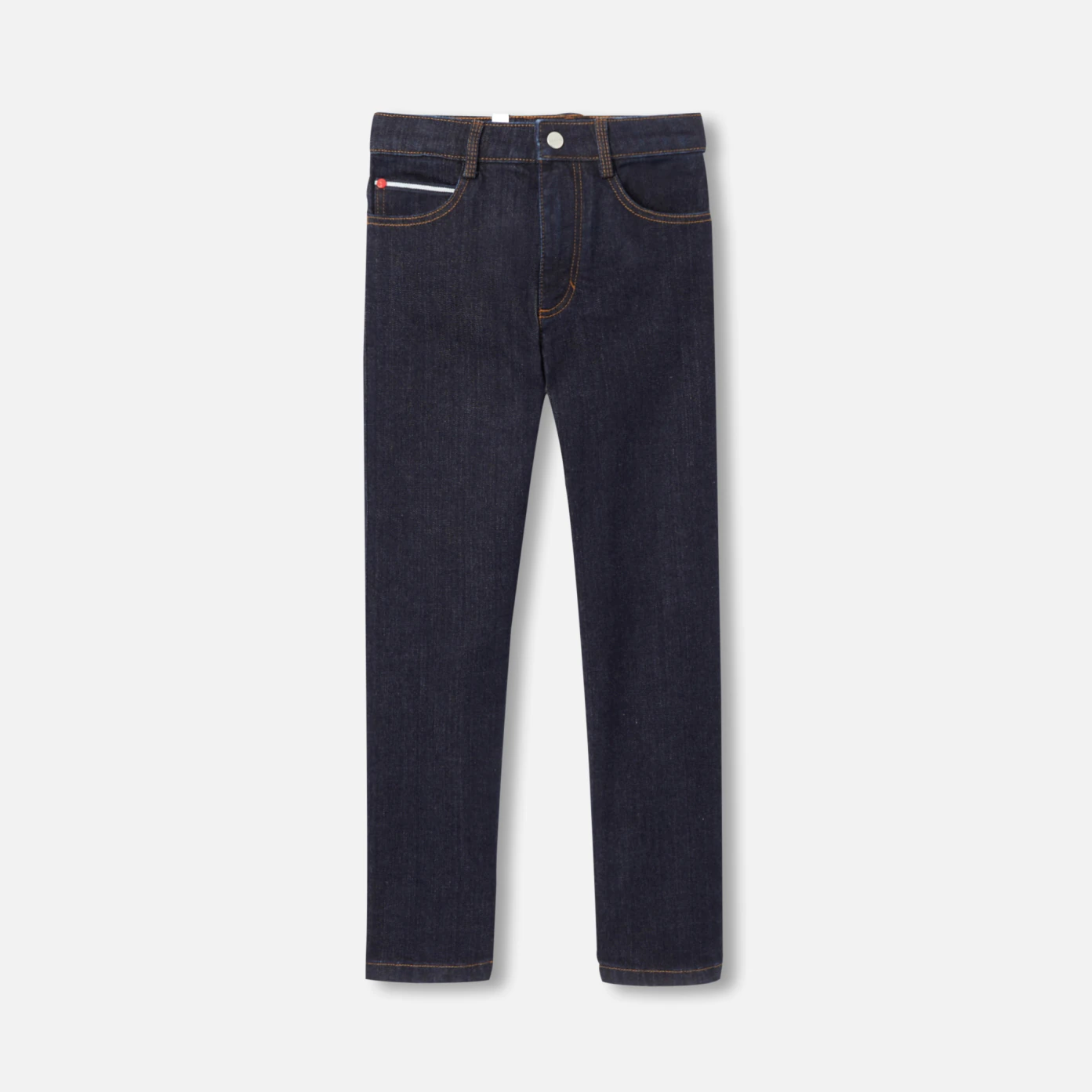 Une coupe regular revisitée, une toile souple et confortable, cette saison le jean enfant garçon se porte jambes plus larges à biais selvedge pour un look modernisé. Repensé pour le quotidien, accordé à pull marin ou un sweat zippé, il s'adapte à tous les styles.- Jean en denim brut- Coupe regular- Jambes larges- Biais contrasté au niveau de l'ourlet esprit selvedge- Taille ajustable de l'intérieur- Ouverture zippée et boutonnée