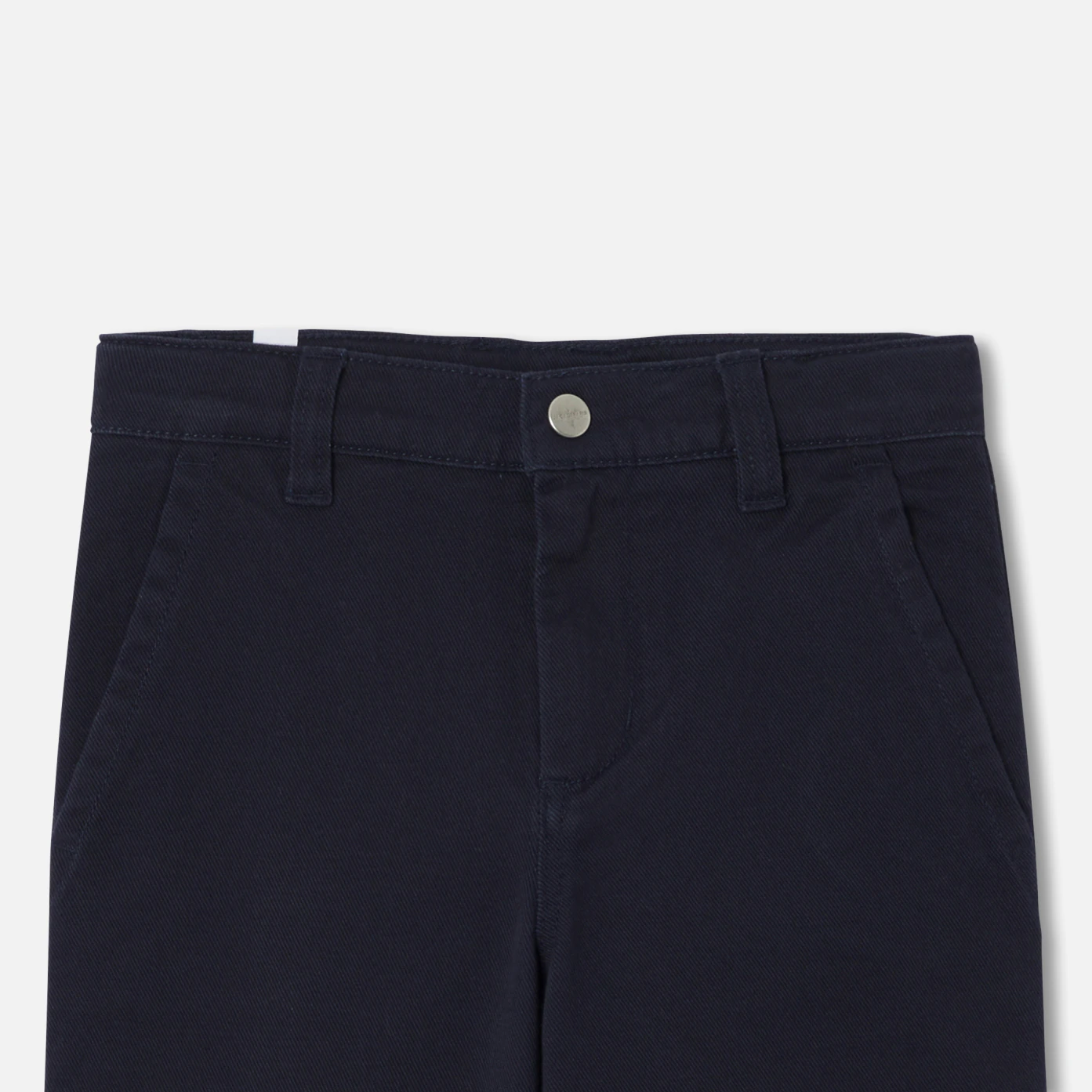 Retravaillé dans une coupe plus large pour un look plus urbain, le pantalon garçon est décliné en twill souple et robuste idéal pour le quotidien. Proposé dans des coloris intemporels faciles à accorder à la collection de vêtements Jacadi, voici le parfait petit pantalon pour la rentrée.- Pantalon en twill de coton biologique- Nouveau fit jambes plus larges- Pinces au dos- 4 poches- Broderie ton sur ton sur poche arrière- Ouverture par zip et bouton- Taille ajustable de l’intérieur