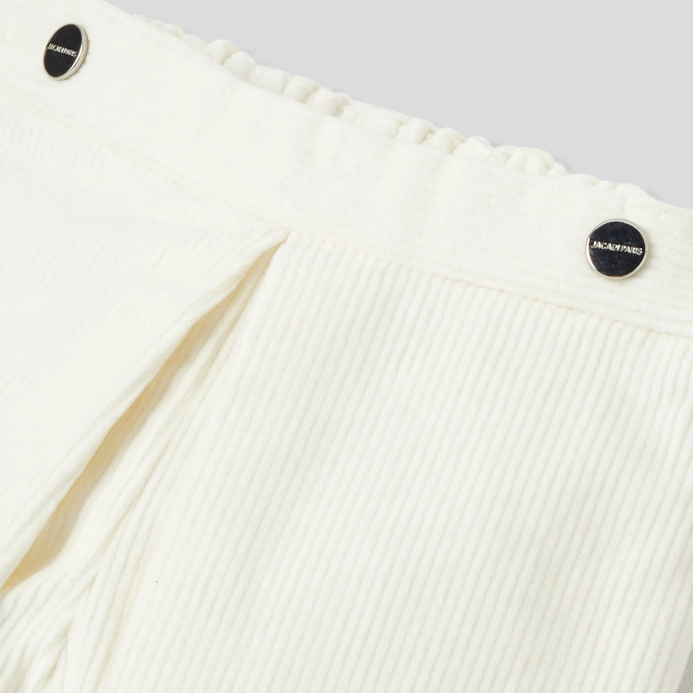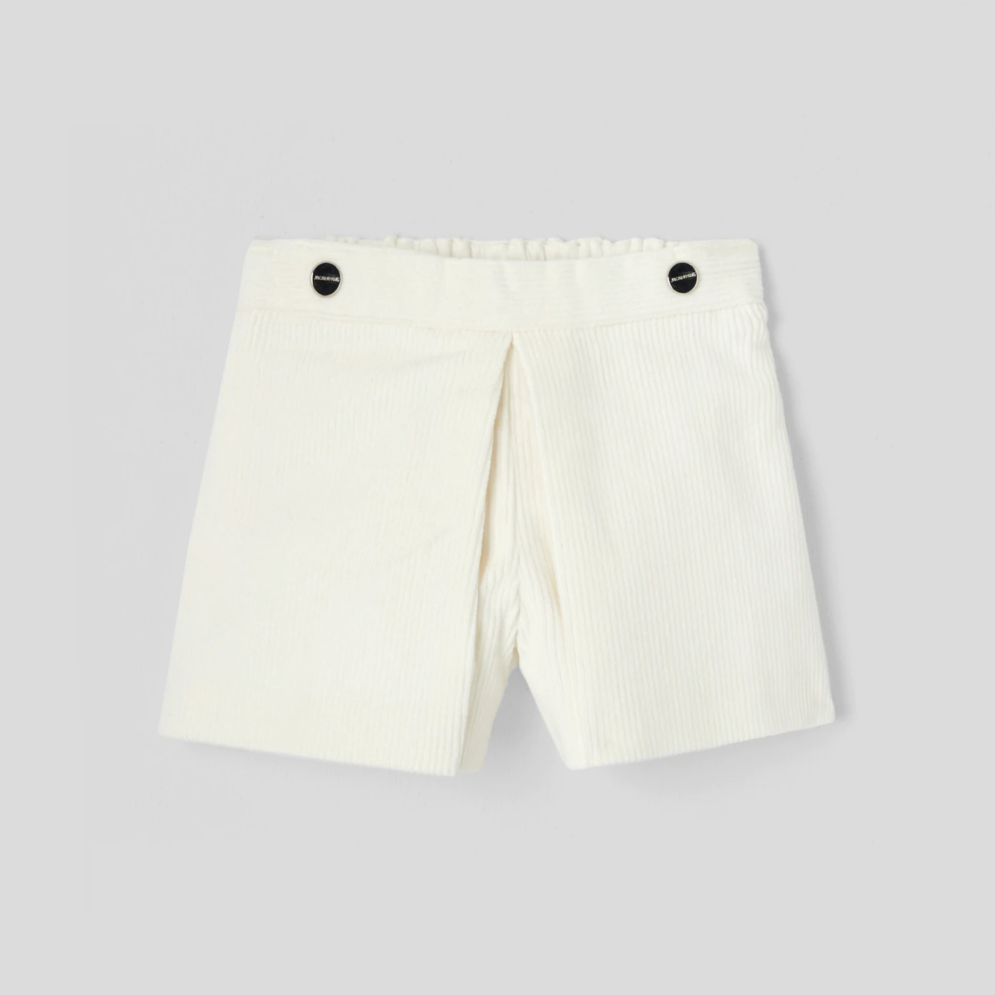 Inspiré des modèles d'antan, cette saison le short bébé fille est taillé comme une petite jupe. Epure chic et graphique, associez son velours blanc à une blouse et un gilet en fausse fourrure pour une silhouette d'hiver au charme français. - Coton organique - Velours côtelé - Plis creux devant - Pressions décoratives - Taille élastiquée réglable de l'intérieur