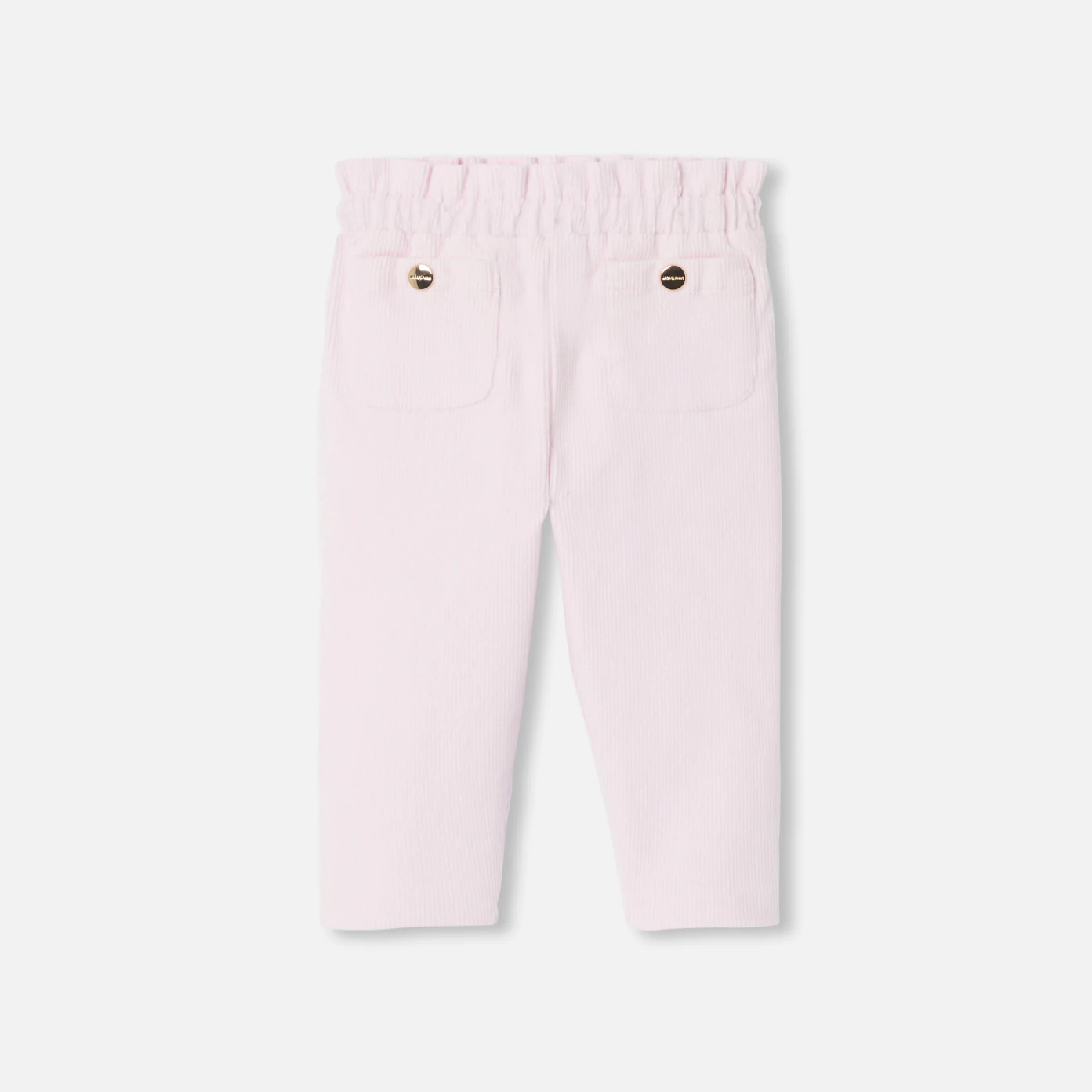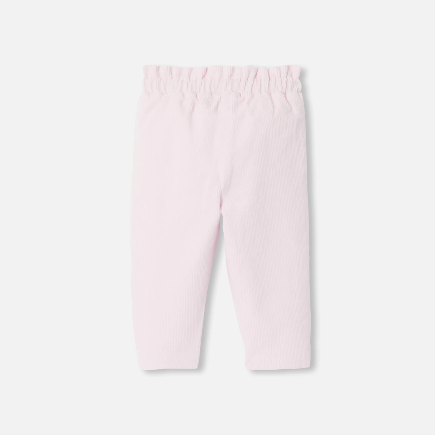 Avec sa coupe paperbag, le pantalon bébé fille est décliné en velours côtelé pour l'automne. Confortable grâce à sa doublure en voile de coton et facile à enfiler, poches plaquées et rivets dorés finalisent ce modèle à porter avec une blouse en Tissu Liberty et des bottillons en cuir.- Pantalon coupe paperbag- Velours côtelé- Doublure en voile de coton- Poches plaquées à rivet doré- Taille élastiquée et ajustable de l'intérieur