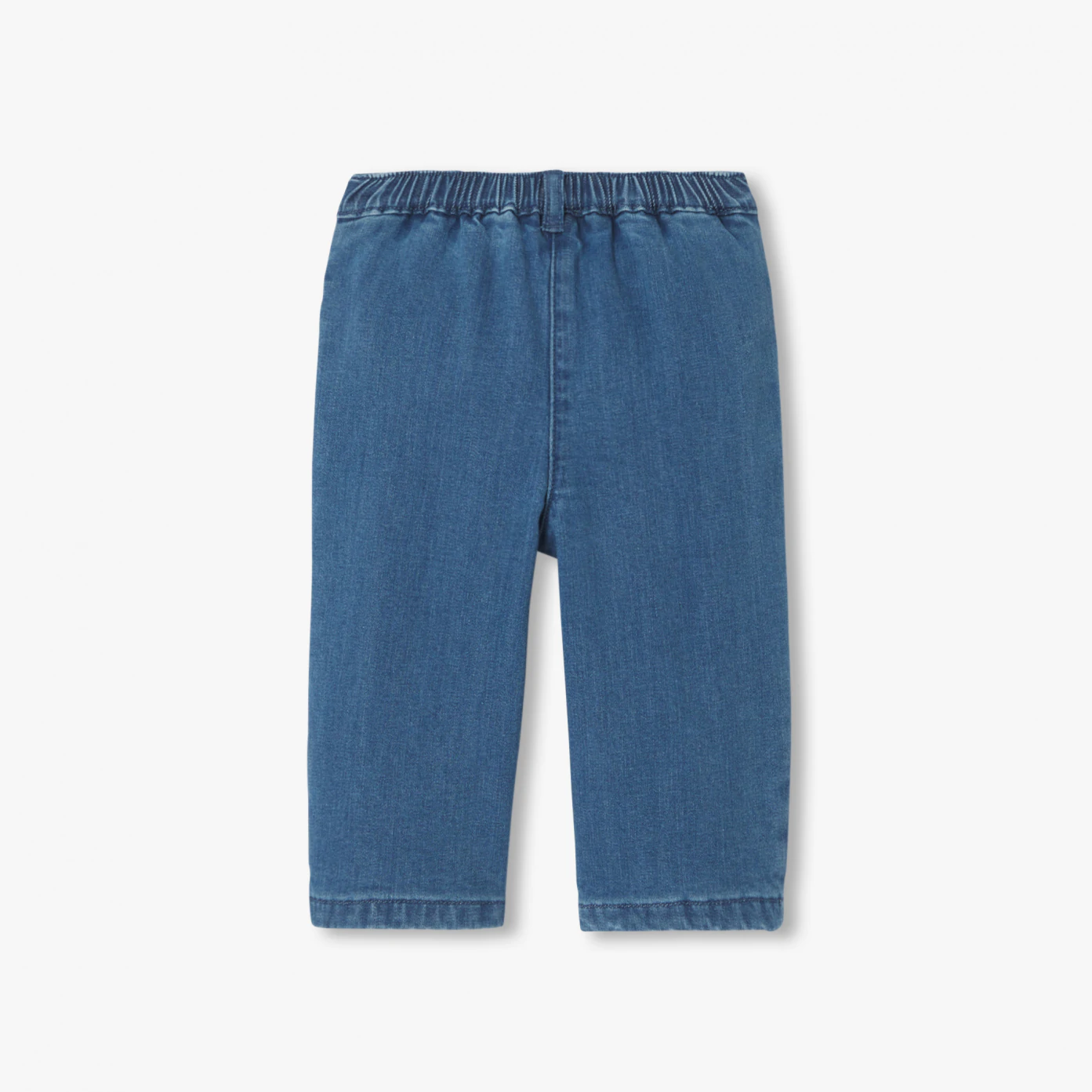 Pour la crèche et les premières sorties printanières, choisissez le confort de ce jean bébé fille. Classique du vestiaire doublé en voile de coton pour apporter confort à bébé, poches en forme de tulipe et taille élastiquée finalisent ce modèle à accorder à une blouse et un gilet pour le quotidien.-Jean confort bébé fille-Doublure en voile de coton-Poches plaquées en forme de tulipe-Taille élastiquée ajustable de l'intérieur-Ouverture par zip et bouton