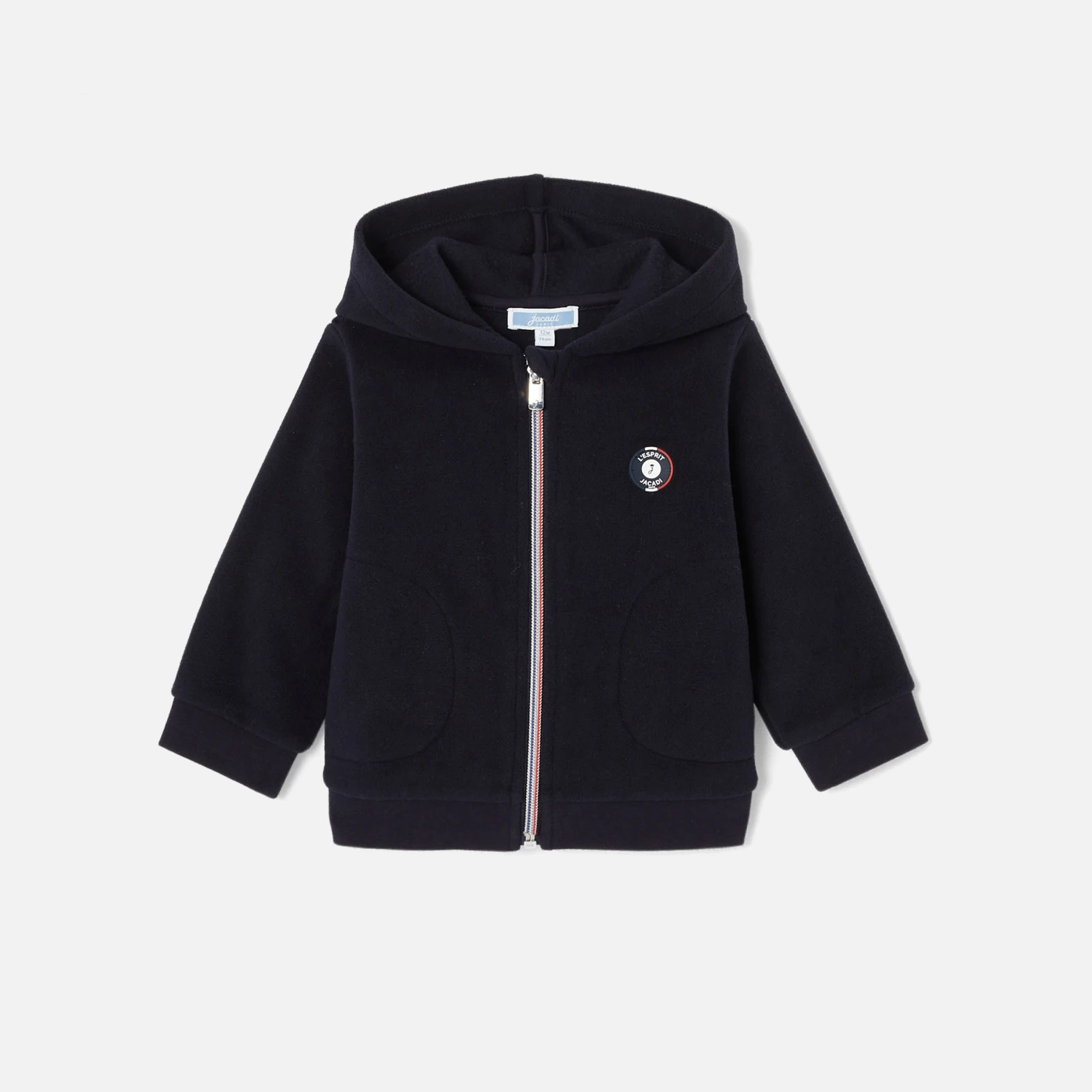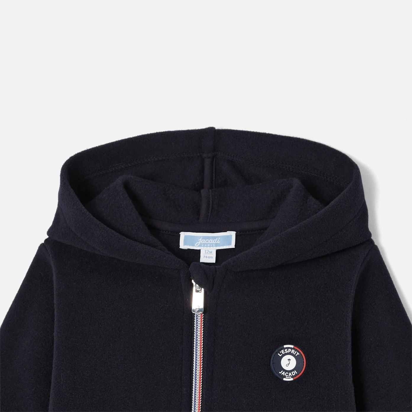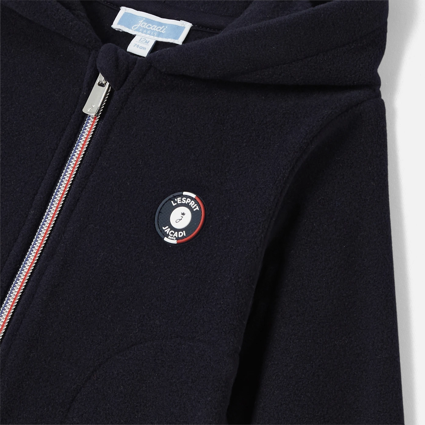Coupe sport chic et tombé parfait pour cet impeccable sweat zippé bébé garçon. Idéal dès l'entrée de saison, capuche et matière polaire finalise cet essentiel du quotidien. Porté sur un polo ou glissé dans le sac à langer pour la crèche, il suivra votre garçon dans toutes ses sorties. - Polaire douce - Ouverture zippée - Détails de bord-côte rayé - Finitions soignées- Badge Jacadi sur poitrine