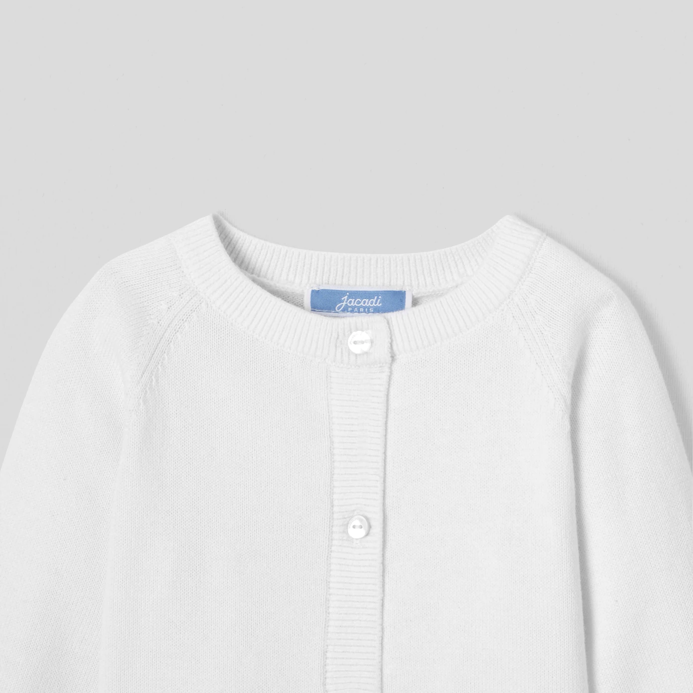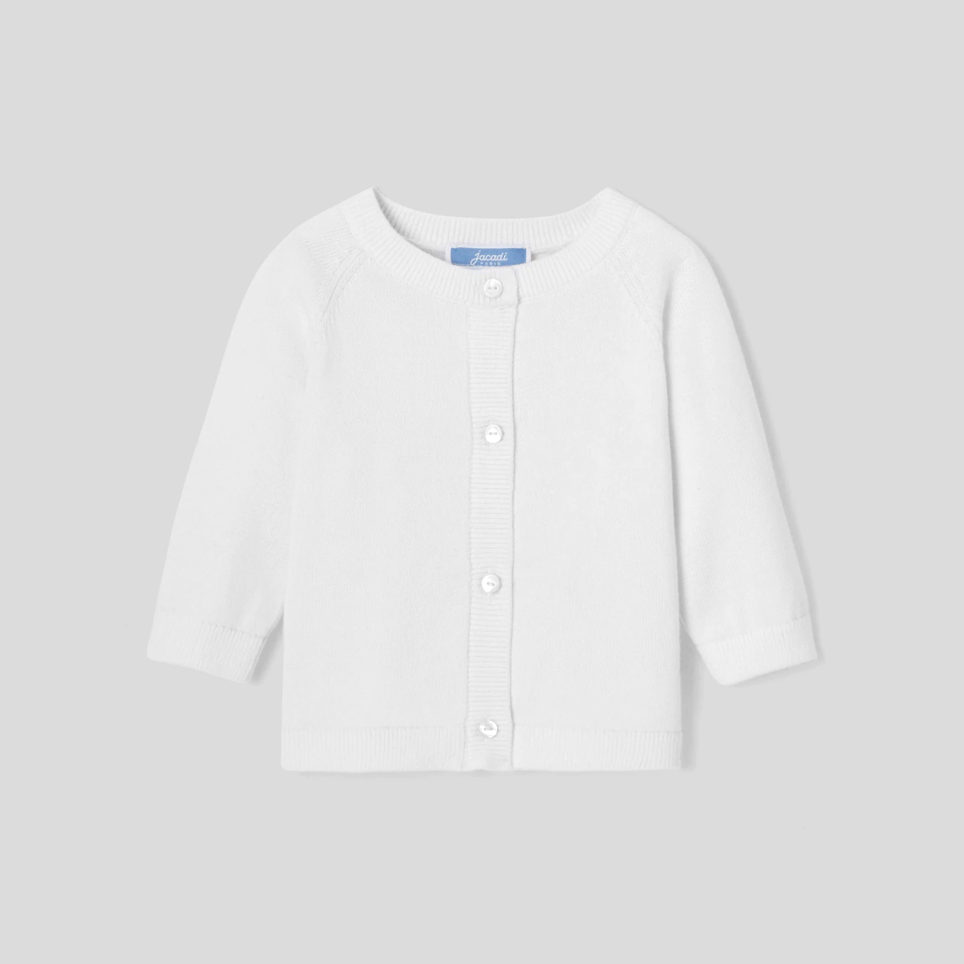 Un premier vestiaire coloré avec ce cardigan bébé fille. Décliné en coton organique et manches raglan, ce gilet s'accordera parfaitement à un bloomer ou une robe en Liberty de la même collection dès le printemps.- 100% coton organique- Détails ajourés aux emmanchures- Ouverture par boutons en nacre naturelle - Jolie idée de cadeau de naissance à offrir ou à s'offrir