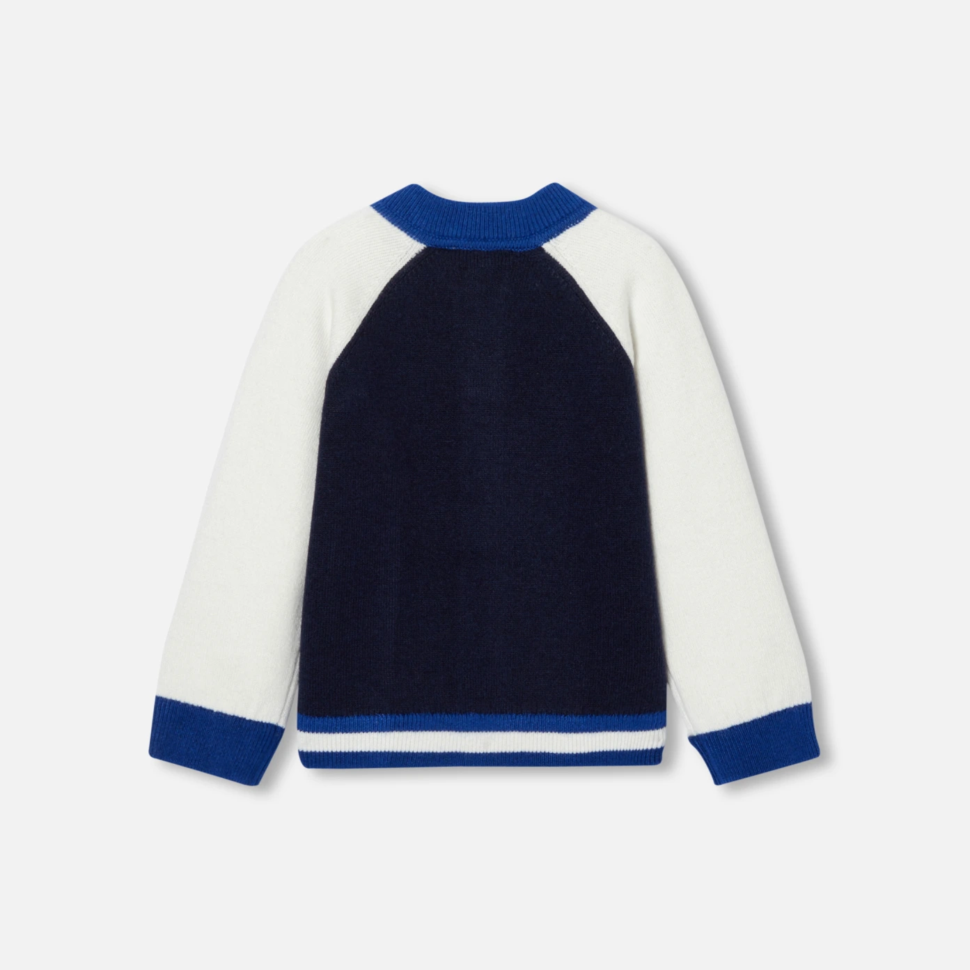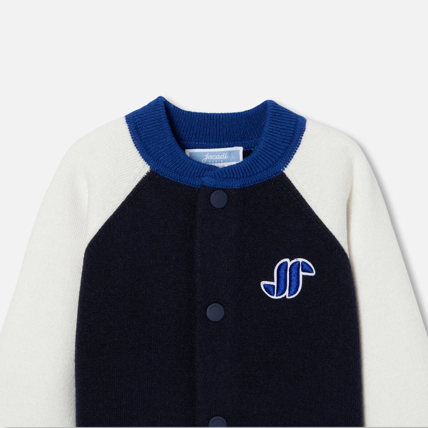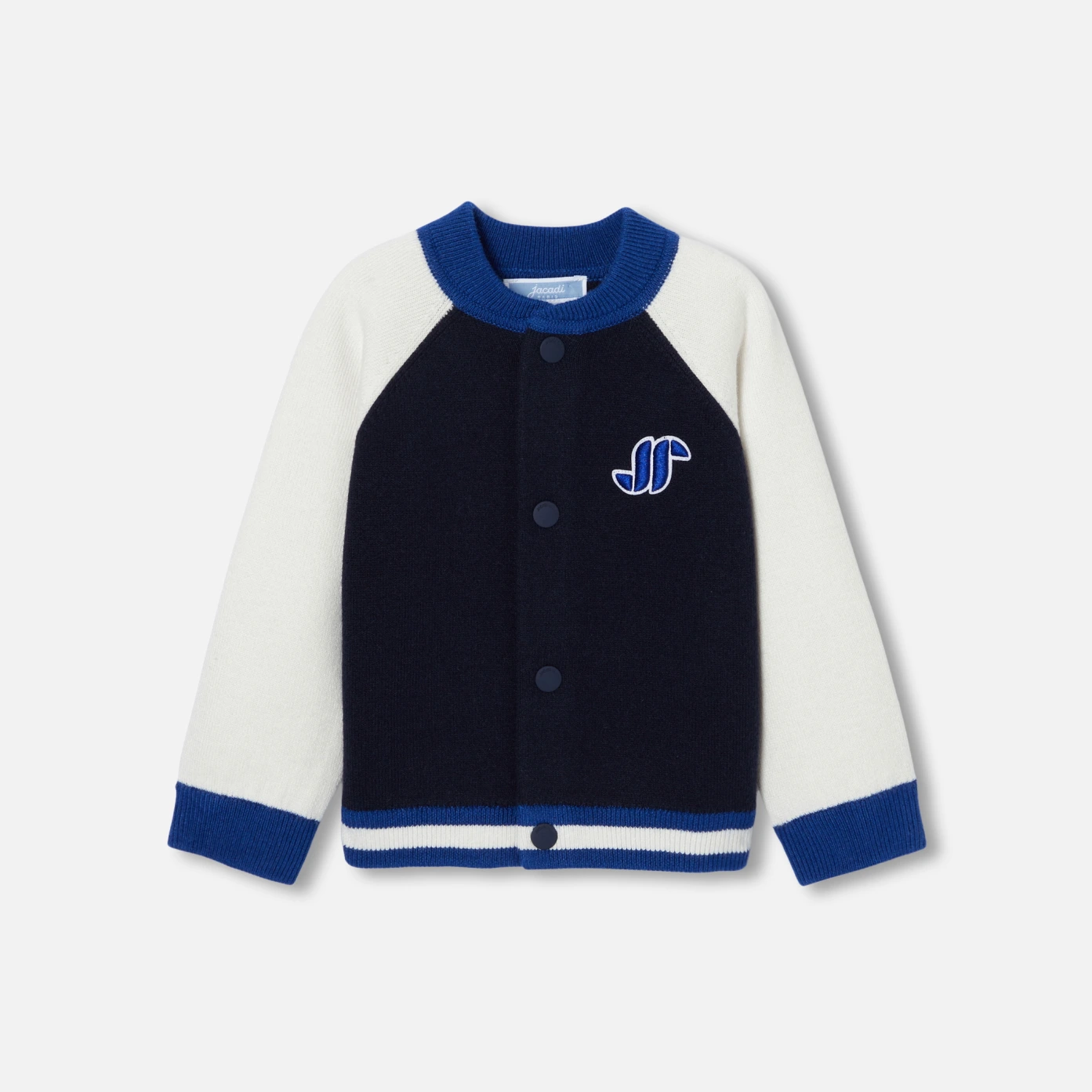 Les stylistes ont retravaillé la coupe du cardigan bébé garçon pour en faire un gilet esprit Teddy cosy et contemporain grâce à son tricot souple. Devenu incontournable au fil des saisons, les petits citadins le porteront avec un jean retroussé et des runnings aux pieds pour la rentrée. - Cardigan bébé garçon en tricot- Esprit veste Teddy- Col, bas de manches et base en bord-côte contrasté - Badge sur plastron- Ouverture pressionnée