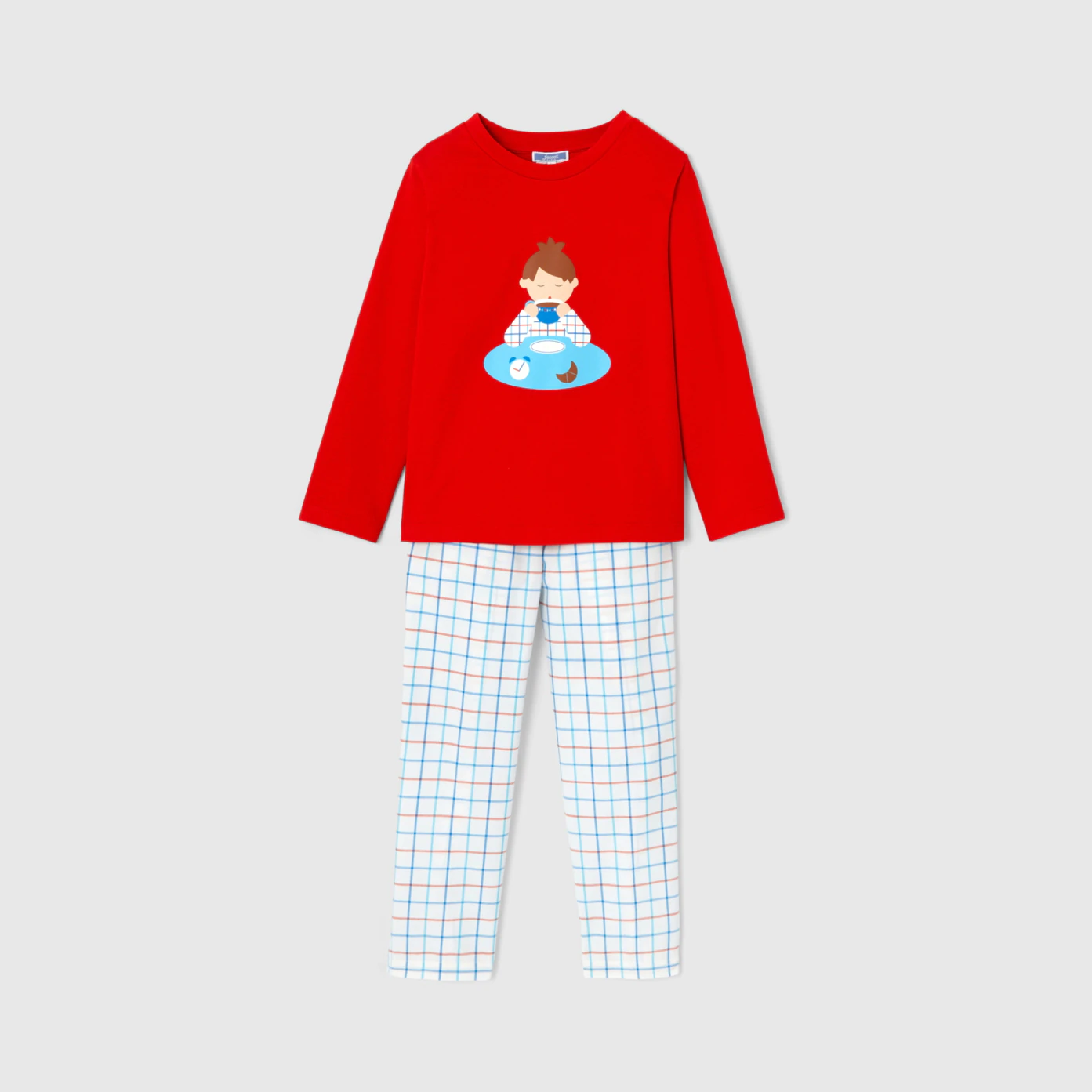 Composé d'un t-shirt manches longues animé d'un motif ludique, ce pyjama enfant garçon est complété d'un pantalon à carreaux pour un look contemporain. Doux et facile à enfiler, il est en coton organique. - Coton organique - T-shirt imprimé thème petit déjeuner - Pantalon à carreaux - Taille élastiquée