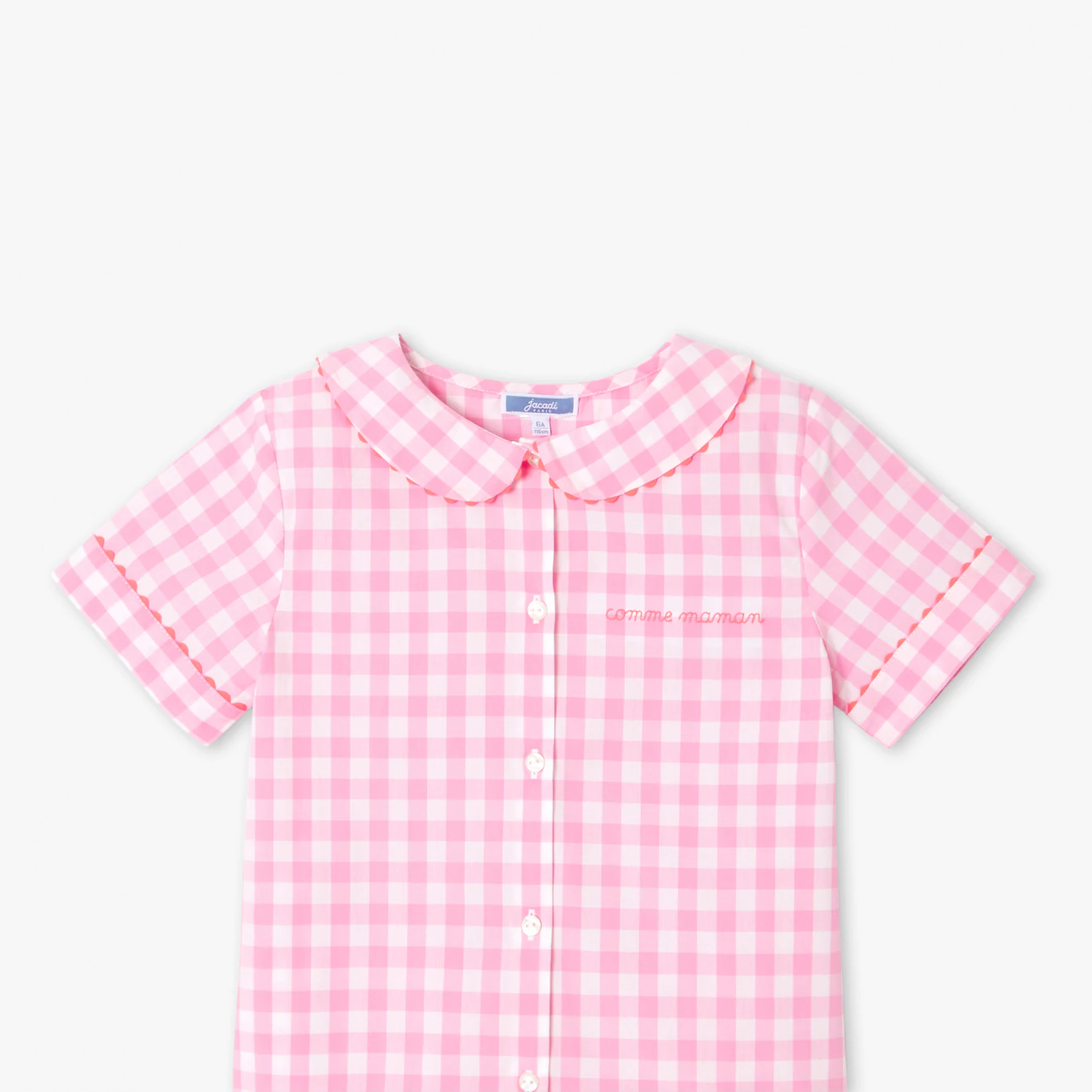 Le pyjashort enfant fille est décliné en coton biologique et animé d'un ravissant Vichy. Composé d'une chemise manches courtes ornée d'un col Claudine et d'un short élastiqué, des croquets fluo finalisent cet indispensable de l'été. - Pyjama short fille en coton biologique - Ouverture boutonnée - Message brodé Comme maman- Short à taille élastiquée- Finitions ruban croquet fluo