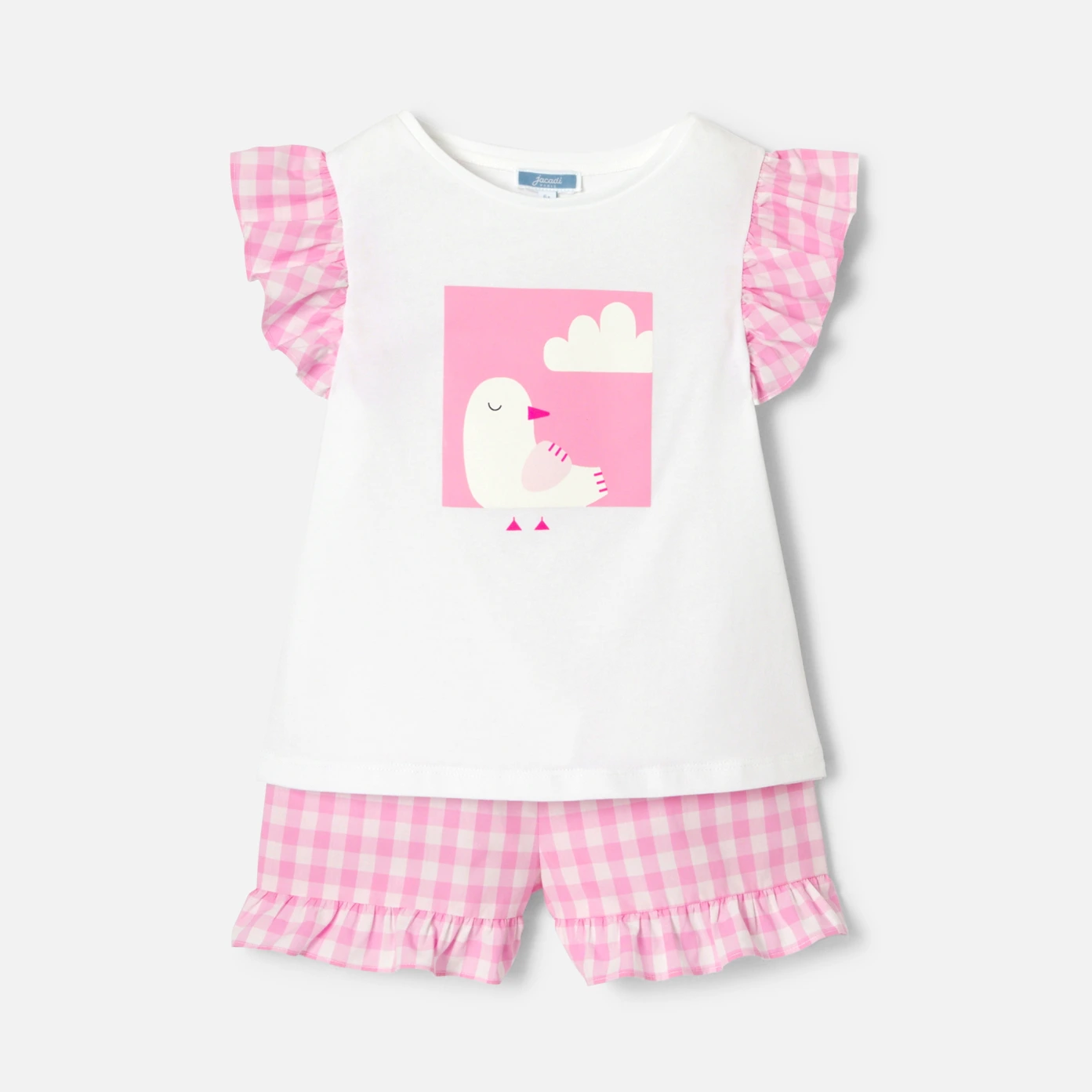 Indispensable du vestiaire estival, le pyjashort enfant fille opte pour un élégant vichy rose. Composé d'un t-shirt à manches volantées et d'un short à base volantée, votre fille ne le quittera pas de la saison. - Pyjama short fille en coton biologique - T-shirt en jersey à manches volantées - Imprimé ludique sur plastron - Short à taille élastiquée - Ouverture au dos pour les tailles 2/3 et 4 ans